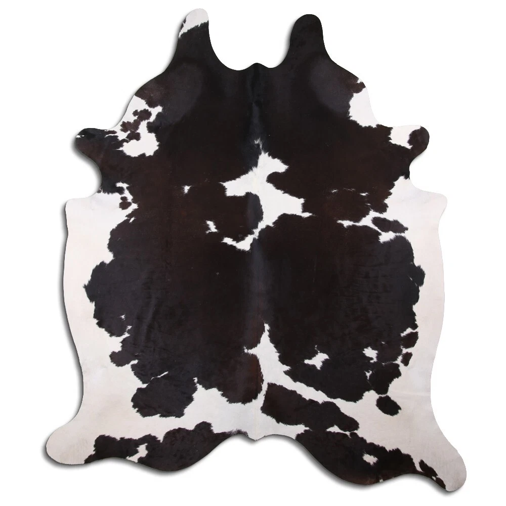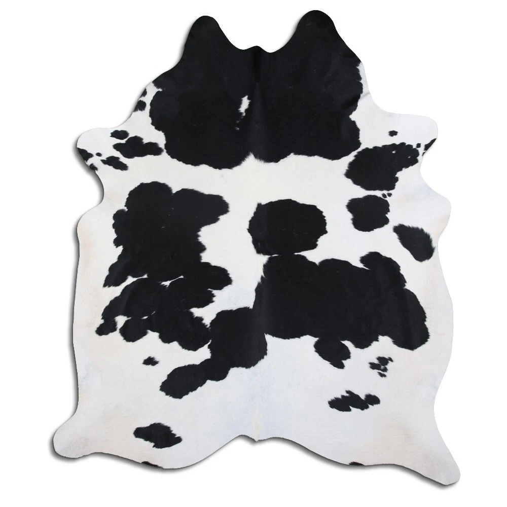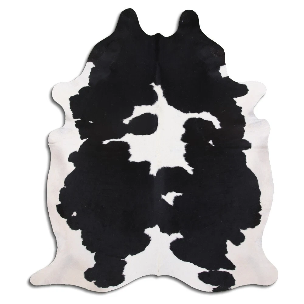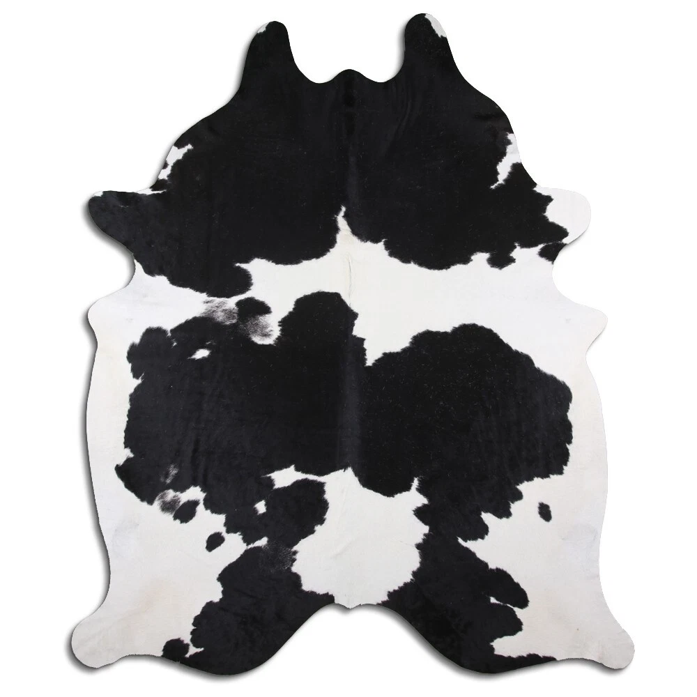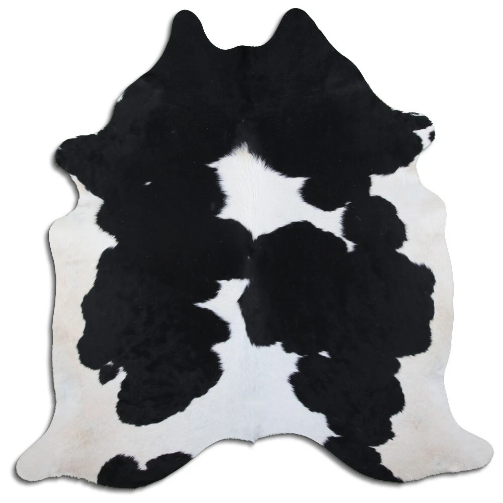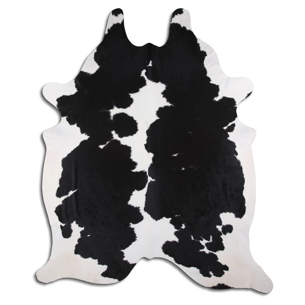 Real Cowhide Rug Black and White Size 6 by 7 ft, Top Quality, Large Size