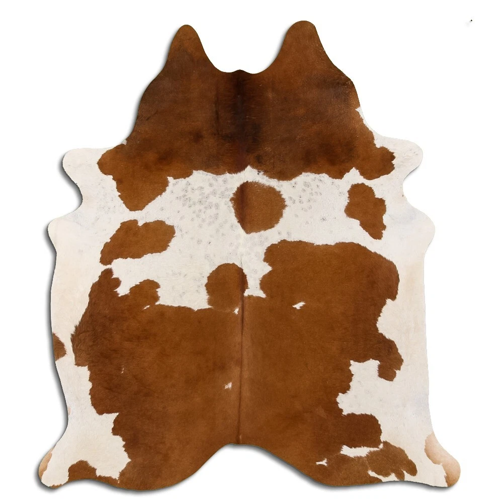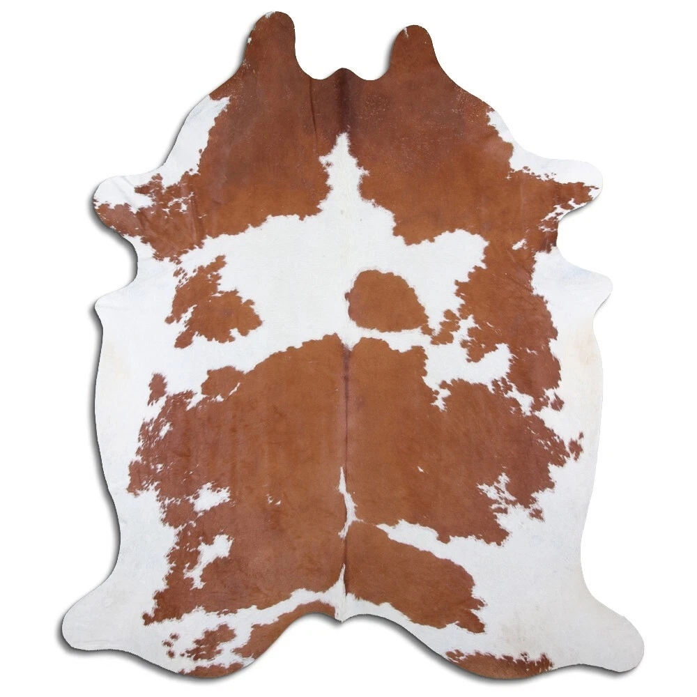 Real Cowhide Rug Brown and White Size 6 by 7 ft, Top Quality, Large Size