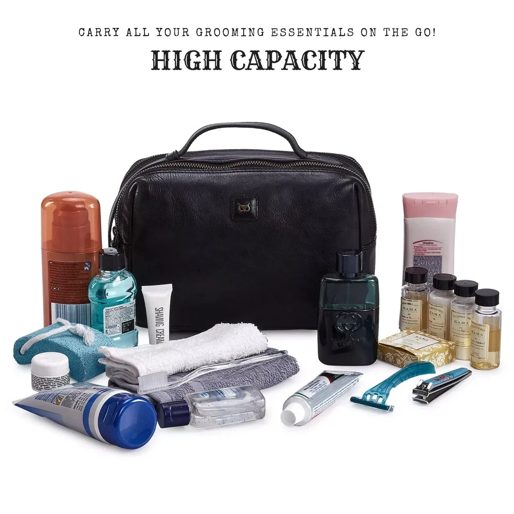 Real Leather Toiletry Bag Dopp Kit for Men Women Travel Shaving Pouch Organis...