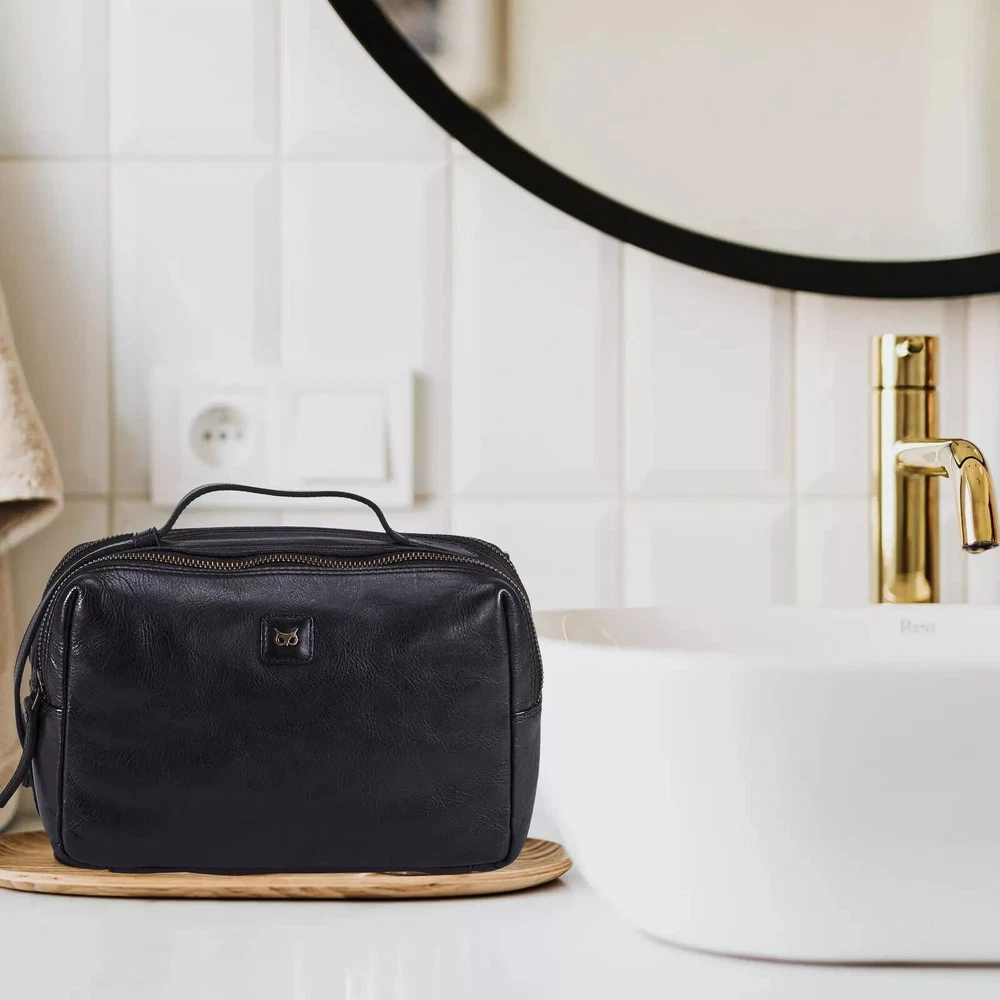 Color: Black Pattern: Solid Department: Men Country of Origin: China Occasion: Business, Casual, Travel Material: COW leather gtin13: Does not apply UPC: Does not apply Brand: Unbranded Closure: Zip Features: Organizer, Water Resistant Style: Toiletry Bag