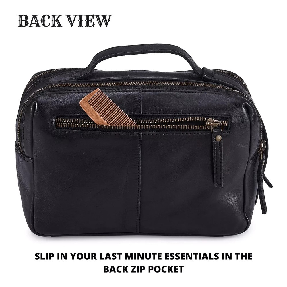 100% Money Back Guarantee if you are not satisfied with your purchase! ___________________ Description: Real Leather Toiletry Bag Dopp Kit for Men Women Travel Shaving Pouch Organiser Double Compartment Cosmetic ★Handmade in INDIA by skilled craftsman, using Real top grain COW leather. ★High Quality washed vintage look. This bag is made in a weathered/distressed look. After the bag is made it is treated with special waxes and oils and then aged. Just like fine wine, this bag will become better with age, softer and unique with every use. Every bag weathers differently upon treatment, as different parts of the animal hide (Belly, shoulder, neck etc) react differently upon treatment, so you can say the bag you will carry will be different than the rest! ★This classic toiletry bag has a simple design with lots of great features. The top has a double zipper, which allows you to fully open the bag so you can easily see everything inside, Its also designed to carry it 2 ways, either hold from the top or from the side whichever way you prefer. ★6.25”Height x 8.75" Length x 4” Width. Two Zippered compartments separated with waterproof lining to help you keep your wet and dry items separately. Inside it also has another zippered pocket at the back so that you can keep your valuables well secured. Another Zippered Pocket is situated at the back of the bag, so that you can slip in your essentials with ease. ★This toiletry bag is perfect for gifting to your loved ones, on any occasions. Whether its Valentine's day, Mothers day or Fathers day, Easters, Christmas or birthdays and anniversaries, weddings this is the perfect gift option ________________________ 100% Money Back Guarantee: We offer 30 Day Money Back Guarantee from the day you purchased if you’re not satisfied with your product. If you have any questions about our products, please contact us as soon as possible. Customer satisfaction is our absolute priority. Shipping: We are always working hard to ensure your package arrives as soon as possible. Please understand that some factors like weather, high postal traffic, and the performance of shipping companies are outside of our control. We offer free shipping to the lower 48 states and ship within 3 business days of payment, usually sooner. We do not accept P.O. Boxes. Please provide a physical address. You will be notified via eBay messages as soon as your items ship. Delivery: We will ship out the item in 2-3 working day after receiving the payment. Usually the delivery takes 2-5 business days. If you don't receive the items after 10 days, please feel free to contact us. You will get a replacement or a full refund. Please DO NOT open a return request or leave negative feedback without asking for help . Returns (Get Free Return Label): We offer a 30-Day Return Policy on defective/wrong items or items which you are not completely satisfied with. You have the option for a full-refund or an exchange of the item. No need to buy eBay return label. Contact us via eBay messages and get free return label. Returned items must be in all of the original packaging and include all of the original accessories or items that came with it. The item and package should be in original condition. Contact Us: Any queries or issues incurred, please feel free to contact us via eBay message, we will get back to you within 24 hours. Please DO NOT open a return request or leave negative feedback without asking for help. Feedback: Your feedback is very important to us. After you get your package and you are satisfied with our service, please leave us positive feedback. We are highly appreciated for your POSITIVE feedback and 5 stars. Enjoy shopping.