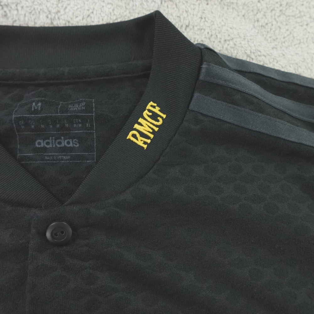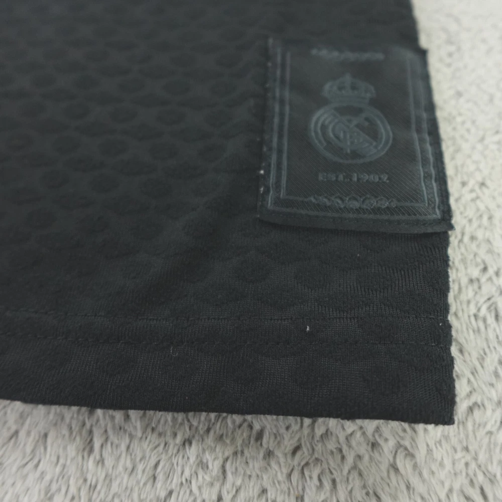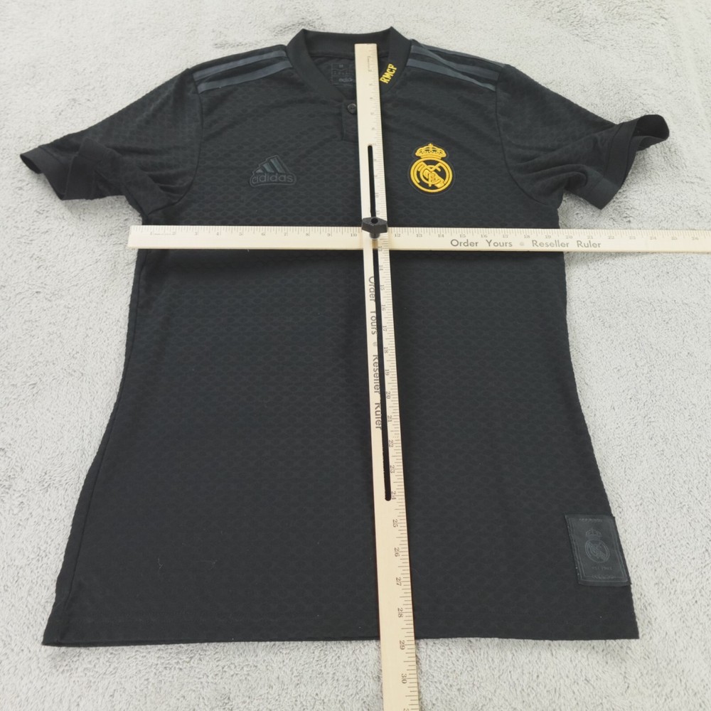 Real Madrid Soccer Football Jersey Medium Black Third Adidas Lifestyler Shirt. Excellent pre-owned condition, no stains, tears, or signs of wear noted, please review all photos. See photos for measurements. If we missed something, don't worry, we offer free returns. Just indicate, "just didn't like it," for any reason, and we'll pay for the return. Thanks for visiting!