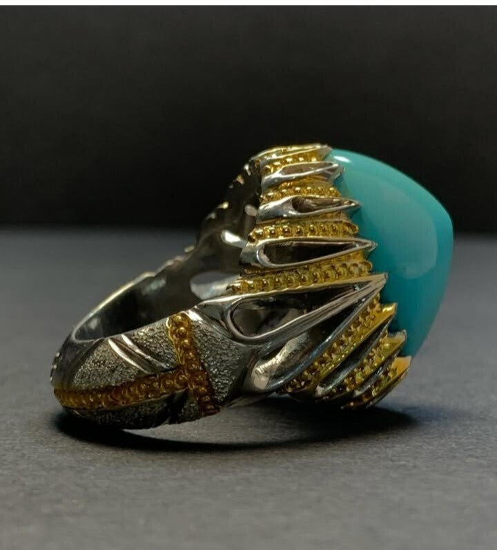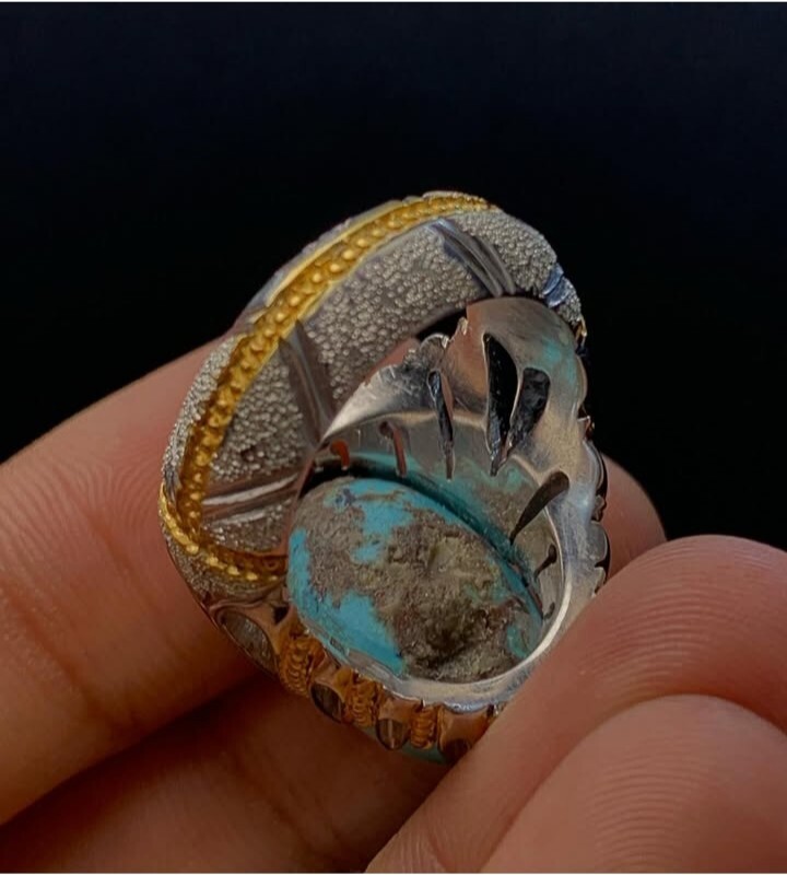 Real Stone Feroza Rings Big Gemstone Turquoise Ring In Sterling Silver 925 Gemstone:- Natural Turquoise Stone Shape :- Gumbad stone Gemstone Weight: 3CT Gem Color::Blue Stone Country; Iranian Treatment: No ITEM TYPE : Handmade Ring Two Tone: Gold plated | Base Silver Stone round About is Gold Polish Metal & Metal Purity:- 925 Sterling Silver will be shipped via Fedex priorty Service Return Policy Buyer pay Return Shipping Lable Charges