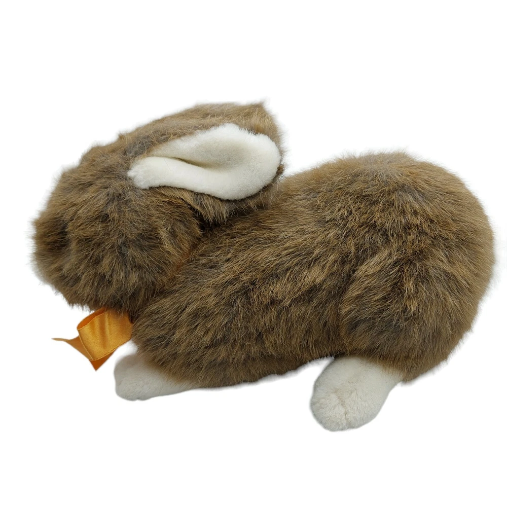 HomeRealistic Easter Brown White Bunny Rabbit Stuffed Plush 11 inch Orange ribbon