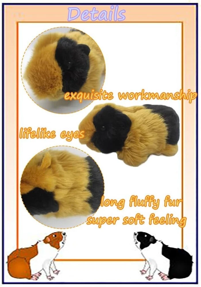 8" Guinea Pig Plush Stuffed Guinea Pig Long Fur Guinea Pig Stuffed Animal Realistic Super Soft Toy Kids Gift (Brown+Black) ❤️【Size】- 8 x 3.5 x 3.5 inches|20 x 9 x 9cm (Lx W x H); very cute and lightweight to carry around. ❤️【Soft Material】- Stuffed Guinea Pigs are securely sewn from high quality polyester fabrics and filled with white polypropylene plush filling, super soft, huggable and super cute; not afraid of squeezing deformation. ❤️【Best Toys and Gifts】- Guinea Pig Plush can not only be used as a gift for children, to help them understand the world of animals and enrich their childhood, but also Can be used as birthday gifts for children, adults, Valentine's Day, April Fool's Day, Easter, Christmas holiday gifts. Soft and comfortable, it will be a favorite companion for play and bedtime. ❤️【Easy to Clean】- Hand wash or machine wash in cold water, slow wash at low temperature, dry in the sun, do not bleach. Wash and dry to make it more fluffy. ❤️【Good Service】- If for any reason you are not completely satisfied with the product, just let us know, we'll be happy to help you out! So, don’t delay any further. Add it to your cart and get your own now!