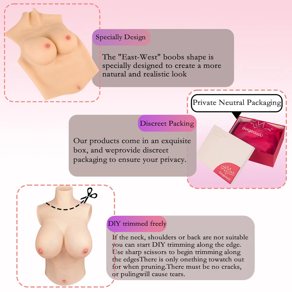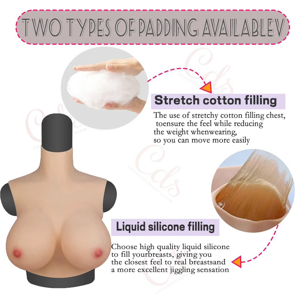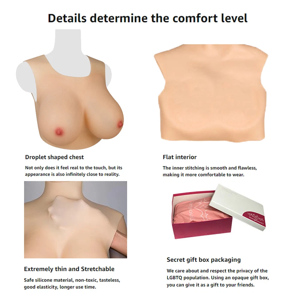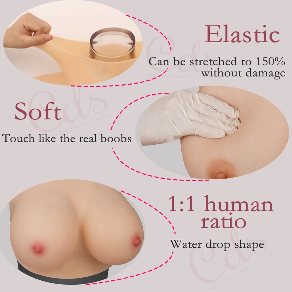 Realistic Silicone Breast Forms Breast Plate Fake Boobs B-H Cup For Crossdresser