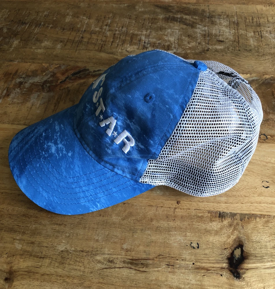 Realtree Fishing STAR Mesh Snapback Trucker's Hat Adult Adjustable Blue/White.