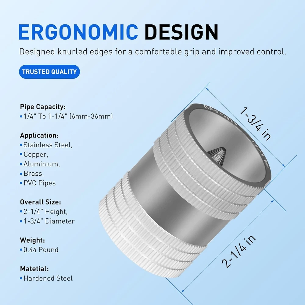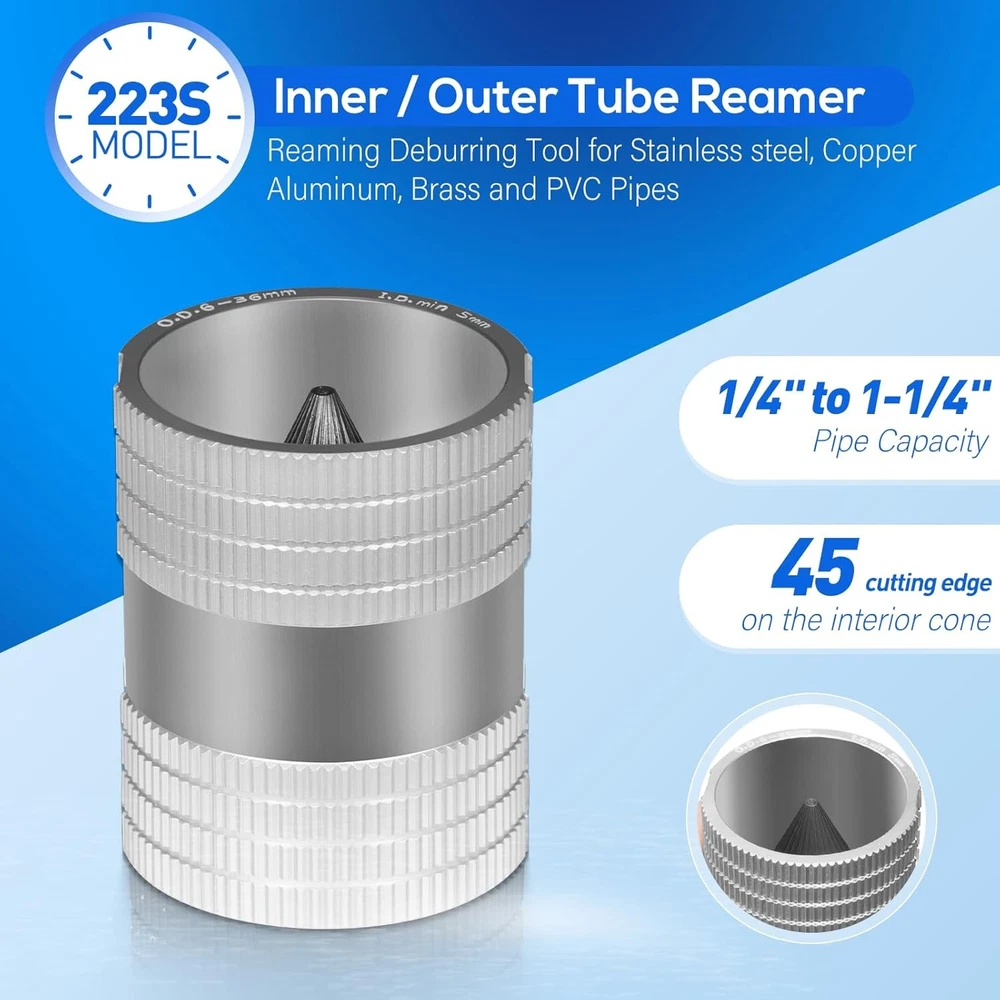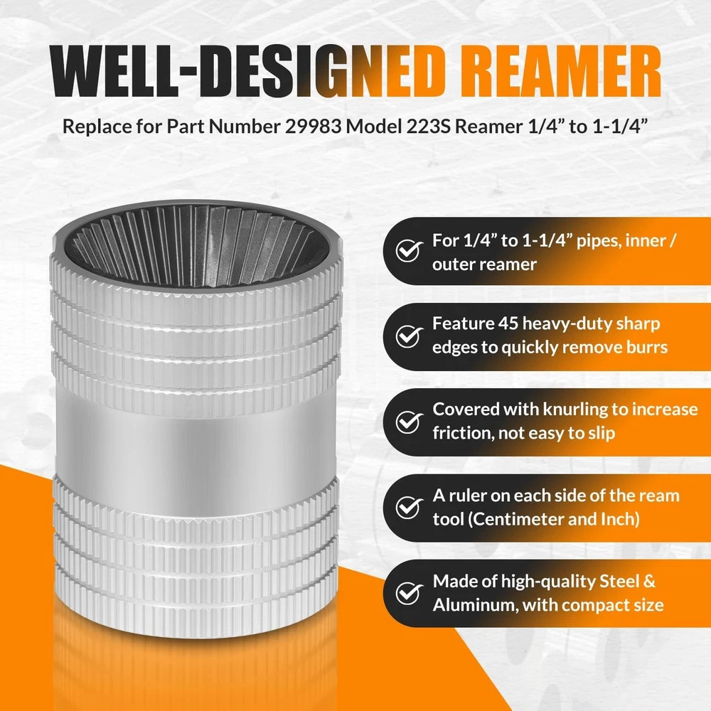 Reaming Tool for Copper Stainless Steel Tubing Pipe Reamer Sizes 1/4" to 1~1/4" Inner/Outer Reamer: Replace for Part Number 29983 Model 223S Reamer. This reaming tool has an outer cone and an inner cone at each end, featuring 45 heavy-duty sharp edges to quickly and cleanly remove burrs from the inner and outer edges of pipes or tubes For Different Tubes and Pipes : This reaming tool can be used to Ream/Deburr/Bevel Aluminum, Copper, Stainless Steel tubes and pipes with an outside diameter capacity of 1/4" to 1-1/4" (About 6mm to 32mm). It is also for Galvanized Pipe, PVC pipe, Bellow Plumbing Works Well-designed Tool : The surface of the reaming tool is covered with knurling to increase friction. It is not sharp but allows you to hold the reaming tool firmly so that it is not easy to slip when reaming, which can also improve work efficiency. Constructed from premium hardened steel, this heavy-duty pipe reamer is designed to endure years of tough daily use in the field, ensuring long-lasting performance Built-in Measuring Ruler : There is a ruler on each side of the reaming tool, one side is in inches (about 2.2 inches) and the other side is in centimeters (about 5.5 cm), which is convenient for timely and flexible adjustment during operation Superior Performance : After cutting, sharp burrs are likely to remain on the inner and outer edges of the pipe, which can easily scratch your hands. If you pass the wire directly through the pipe, the wire insulation layer is likely to be scratched by the burrs, which can cause electrical Leakage in serious cases. This reaming tool can help you quickly grind off the burrs on the inner and outer edges of the pipe, ensuring safety to a certain extent Satisfaction Guarantee: If you're not satisfied with the tool, simply return it for a full refund in 60 days.If you have any questions, please feel free to contact us and we will reply you as soon as we can. 72468 Turbo Mounting Gasket Set&Turbo Pedestal O-Ring Seal Gaskets for Ford 7.3L 19.40 USD Free shipping Lower Unit Gear Lube Pump for Standard Quart Bottles Fits All Mercury 13.50 USD Free shipping For DeWALT Models D55146,D55167,D55168 Air Compressor Piston Kit 2-7/8" N038785 47.99 USD Free shipping 3 Foot, 2-Wire Power Fits for Lowrance HDS,Elite FS 000-14041-001 Power Cable 22.66 USD Free shipping C5NN7277C Gear Shifter Shift Boot For Ford Tractor 2N 8N 9N NAA Jubilee 8N7277 13.34 USD Free shipping 72994 Transaxle Seal Service Kit for Hydro-Gear ZT-2800 ZT-3100 ZT-3200&ZT-3400 35.08 USD Free shipping 3 Sets 3/8" Impact Wrench Retaining Ring Clip with O-Ring for Milwaukee Type 12.62 USD Free shipping Shifter Seal Remover Installer Tool for GM TURBO 300 350 400 425 475 700-R4&4L60 18.99 USD Free shipping For Foredom Flexshaft 39” Flexible Inner Shaft Cable & Rubber Outer Sheath Set 28.35 USD Free shipping Camshaft Holding Retaining Tool J44221 For GM Buick Chevrolet GMC 2.8L 4.2L/3.7L 20.80 USD Free shipping 9.9102G Black Energy Suspension Low Profile Bump Stops 2pcs for Cars Trucks SUVs 15.49 USD Free shipping A Pair 14" Aluminum Alloy Bandsaw Trunnions For Most 14" Wood Band Saw 30.94 USD Free shipping Drop Pitman Arm 2.5"-6" Lift Power Steering 6605 for Jeep Wrangler YJ TJ XJ&MJ 43.36 USD Free shipping 7.3L Powerstroke Diesel Crankcase CCV Breather O-Ring Vent Valve Seals 11.40 USD Free shipping 58430 Shaft Type Seal Puller Removes Cam for Many Shaft/Seal Application 16.45 USD Free shipping DG61003 For Noga Dial Gage Test Indicator Holder Magnetic Base 176lb Fine Adjust 86.81 USD Free shipping 3" Front & 3" Rear Full Lift Kit for Dodge 1994-2001 Ram 1500 4WD 2WD Suspension 172.99 USD Free shipping Vacuum Breaker VAC-VBK-X1B Replacement Kit for Traditional ASSE 1019-A Repair 12.83 USD Free shipping 6803329/7137769 Hydraulic Lift Cylinder Seals Kit for Bobcat 1.25” Rod &2” Bore 14.93 USD Free shipping Aluminum Door Grab Handle Inserts Cover Trim for Jeep Wrangler JK 2007-2018 22.80 USD Free shipping 2 Pack Band Saw Tires for 14" Delta Craftsman 3AD92501 Jet JWBS-14DXPRO 18.52 USD Free shipping 4.4123R Body Cab Mount Bushing Fits for 1980-1998 Ford F-150 F-250 F-350 2WD 4WD 126.68 USD Free shipping J248-030 for Hoshizaki 3U0111-01 Water Valve 120V 60HZ wit Mounting Nuts kit 24.73 USD Free shipping 720085-1 Power Cable 6 Feet PC 12 Power Cord for Humminbird SOLIX & Onix Series 26.88 USD Free shipping 010-12938-00 Power/Data Cable Repalcement for Garmin EchoMAP Ultra 102sv/106sv 19.85 USD Free shipping 70300 Straight U-Joint Snap Ring Pliers Steel for Automotive &Medium Duty Trucks 23.91 USD Free shipping For Humminbird 740093-1 Transducer Mount MHX XNT Hardware Transom Mount Bracket- 13.86 USD Free shipping Fit for Ford Super Duty 38700 Spindle Snap Ring Pliers Ratchet Locking Design 33.80 USD Free shipping K-0650 Air Compressor Cylinder Sleeve & Ring Kit For Craftsman Black and Decker 19.55 USD Free shipping RV Toilet Seal Gasket for Dometic 300,310,320 Series RV Toilet Flange Seal Kit 14.50 USD Free shipping For Hydro-Gear 70853 Seal Kit Overhaul Rebuild Retaining Ring Kit Equipment Part 35.32 USD Free shipping 5PCS Door Grab Handle Cover + Push Button Knobs Trim for Jeep Wrangler JK 07-18 25.80 USD Free shipping 33260 Low Profile Brake Line Single/Double Flaring Tool For 3/16" / 1/4" Tubing 64.48 USD Free shipping for Garmin LiveScope Plus LVS34 Adjustable Pole Mount - 0-Degree / 010-13228-03 28.80 USD Free shipping New AR1828 Water Pump Check Valve Kit for Annovi Reverberi 18mm XR RK RKA RKV 29.99 USD Free shipping 4.0" Bore x 1.75" rod cylinde Hydraulic Log splitter cylinder rebuild seal kit 18.60 USD Free shipping 072927 Diffuser Assembly Replacement For Pentair Whisperflo Inground Pump 33.80 USD Free shipping For Ingersoll Rand 1/4" NPT 110/120V Electronic Drain Valve Automatic Edv200- 173.99 USD Free shipping GridLoc Through Hull Wiring Kit for Device Battery Connections / Kayak Fishing 15.53 USD Free shipping Harmonic Balancer Installation Tool LS LT For Chevy GM 1997-UP LS1/2/3/4 LSX