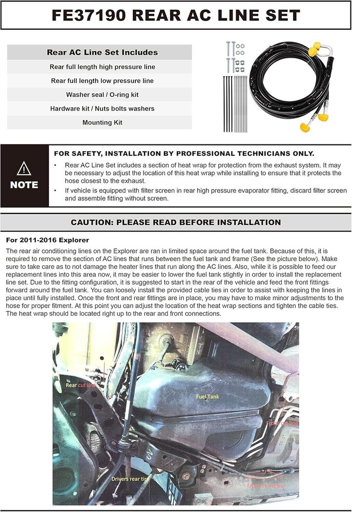 Rear AC Line Set Black for Ford Explorer 2011-2016, Flex 2013-2019 FE37190