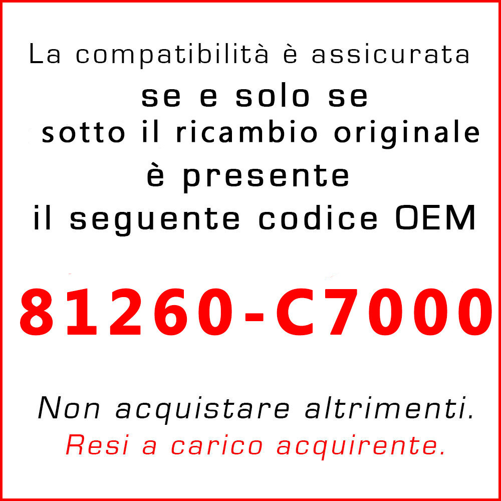 Vinciann Negozio Altre strepitose occasioni (clicca sull'immagine) Newsletter Rimani aggiornato su offerte e nuovi prodotti del nostro Store iscrivendoti alla nostra Newsletter. Iscriviti alla Newsletter Spedizioni Rapide Le spedizioni sono molto rapide. Spedisco sempre entro 24 ore dalla ricezione del pagamento. Spesso entro poche ore. Iscriviti alla Newsletter Aggiungimi ai venditori preferiti Interruttore apertura portellone bagagliaio posteriore per Hyundai i20 II 14-21 E7RI Caratteristiche principali: Compatibilità: HYUNDAI i20 II Hatchback (2014 - 2021) HYUNDAI i20 II Active (2015 - 2021) Codice sostituito: 81260-C7000 Materiali: Plastica con finitura gommata ed elementi elettronici Connettore elettrico: 2 PIN Descrizione: Prodotto compatibile , non originale, ma di ottima fattura. Facile installazione , progettato per adattarsi perfettamente alla maniglia del bagagliaio posteriore. Condizioni e confezione: Fornito in confezione bulk anonima per una maggiore convenienza. Spedizione: Disponibilità immediata in magazzino, pronto per la spedizione rapida dall’Italia con Corriere Espresso. Nota importante: Gentile cliente, prima di acquistare: Controllare attentamente le foto e confrontarle con il pezzo da sostituire. Verificare che forma, funzioni e connettori corrispondano a quelli del prodotto originale. Utilizzare la lista di compatibilità come ulteriore riferimento. Spedizioni sicure ed assicurate È un prodotto nuovo , disponibile in magazzino (in Italia) e pronto per la spedizione immediata, tracciabile . Il servizio di spedizione che vi offriamo è sicuro, garantito e - ribadiamo - tracciabile, a differenza di Posta Prioritaria, servizio tanto economico quanto inaffidabile circa la consegna dei prodotti. Con noi potete rilassarvi! Le nostre spedizioni sono tutte assicurate fino all'intera spesa effettuata. In caso di incidenti riceverete un rimborso completo o procederemo ad una nuova spedizione. Newsletter Clicca qui per iscriverti alla nostra newsletter e rimanere aggiornato su offerte e nuovi prodotti esclusivi del nostro Store. Contatti Per qualsiasi dubbio o domanda su questo ordine non esitare a contattarmi ed a chiedere ulteriori spiegazioni.