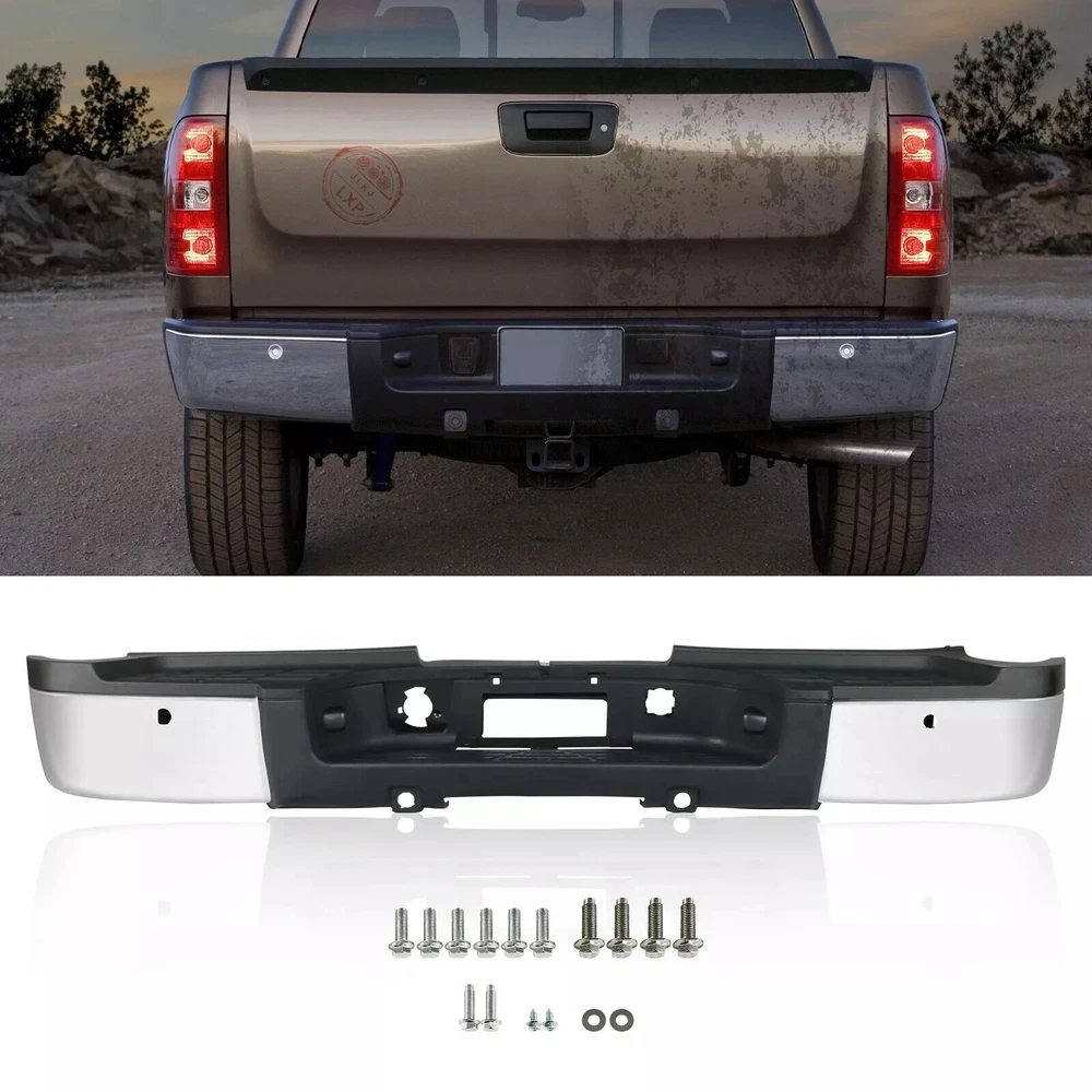 Fitment: For 2011-2014 Chevrolet Silverado 2500 HD 3500 HD For 2011-2014 GMC Sierra 2500 HD 3500 HD For Models With Park Assist Sensors Details Placement on Vehicle:Rear Color:Chrome Material:Steel Package Includes: 1*Rear Bumper Assembly