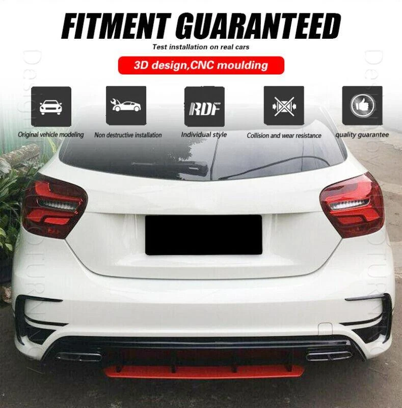 Fitment: Fit for Mercedes Benz W176 A Class A200 A250 A45 2013-2018 Specifications: Product Name: Rear Bumper Lip Material: ABS Package Size: 143*36*19cm Package Weight: 5.6kg Features: • Made of High Quality Lightweight ABS. • Improve the aerodynamic characteristics by enhancing the transition between the high-speed airflow below the vehicle and the free airflow in the surrounding atmosphere. • Provide space for the airflow under the vehicle to decelerate and expand, thereby providing pressure recovery by providing a degree of "wake fill" or more accurately. • Does not cause excessive airflow separation and resistance and keep driving safety. • Sport style rear diffuser, perfect for decoration, increase both road safety and racing style. Package included: Rear Bumper Diffuser The Rear Bumper Lip is one of the simplest mods you can do to the exterior of your car that will give your car that completely different look. Not only are spoilers meant for great looks, they also help Prevent the rear of the car from scratching. Fitment: Fit for Mercedes Benz W176 A Class A200 A250 A45 2013-2018 Specifications: Product Name: Rear Bumper Lip Material: ABS Package Size: 143*36*19cm Package Weight: 5.6kg Features: • Made of High Quality Lightweight ABS. • Improve the aerodynamic characteristics by enhancing the transition between the high-speed airflow below the vehicle and the free airflow in the surrounding atmosphere. • Provide space for the airflow under the vehicle to decelerate and expand, thereby providing pressure recovery by providing a degree of "wake fill" or more accurately. • Does not cause excessive airflow separation and resistance and keep driving safety. • Sport style rear diffuser, perfect for decoration, increase both road safety and racing style. Package included: • Car Rear Bumper diffuser • 2pcs Silver Exhaust Tips • Mounting Accessories Delivery details Payment and TAX Warranty Policy Return Policy Contact us Delivery details NOTE: The shipping fee is only for the mainland of each country, it does not include the overseas territories, such as Virgin Islands (U.S.) , Puerto Rico, Hawaii , French Reunion Island, etc. But on ebay, when buyers from Puerto Rico and overseas territories , the shipping fee is equal to United States, it is NOT correct,. please contact us for correct shipping fee, or we will cancel the order. Sorry for the inconvenience, and thanks for your cooperation. 1. If you want to upgrade the shipping, please contact us before making payment, we will revise the shipping fee. 2. We will ship according to your Ebay address. Please make sure it is correct and include phone number for delivery. If you want to know the exact shipping time , please contact us . Payment and TAX 1.We accept Multiple Payment Methods Available: Credit Card, Debit Card, Gift Card, Apple Pay, Goggle Pay, PayPal and PayPal Cred. 2.Please leave note for your special request (e.g. Colors or Size) in ebay note when you pay the order. 3.Your must complete the payment within 7 days or Ebay will automatically open unpaid item case For US Buyer:The invoice value of each item is less than 800USD ,so you no need to pay any tariff . NON-US Buyer Note: Most countries are tax free based on our invoices, if tax is required, which will be buyer's responsibility. Warranty Policy We Warranty Our Product Within the Limited Warranty Policy Specified on Ebay. Please Email us if ou have any question regarding the warranty policy on a specific item. Most of the items are Aftermarket Parts and they are intended for off-road usage only, therefore no installation instruction will be included, Professional installation are Highly Recommended. We are not responsible for any damages to the item or the vehicle that occur during the installation of the item.Also, Please Make Sure Proper Installation is Performed as we are not responsible for item being missing or flew off after the installation. if you don't think the item can stay on the car properly, please do not attempt to drive the car with it and please check with professional shops/mechanics or contact us for assistance. Return Policy We Accept Returns Within the Return Period On Ebay. Return Authorization/Return Approval is Required For Every Return. So If you Wish to Make a Return On Your Purchase. Please Contact us Before You Send The item back For any damages occured to the item upon arrival, Please notify us within 5 days of the delivery so we can take proper action to fix the issue. So Please Kindly inspect and check the item condition upon arrival.For Any other Return Inquries, You can contact us within the return period to obtain return authorization/return approval. In case of return, the merchandise needs to be returned in original condition with origi- nal packaging in order to be eligible for an exchange or a refund. Items must be not opened in their original package. Any mark of installation, mounting, cutting, scratch or using will not be allowed. Contact us 1.We are trying our best to explain all details of the products here! If you have any question, please feel free to contact us by Ebay message, and We will get back to you within 24-48 hours. 2.Customer satisfaction is our NO.1 priority. If you are not happy with the item that you purchase, please contact us first. We will try our best to solve the problem with you.Please leave us a positive feedback if you receive the item.Please do not leave negative or neutral feedback without any contact.If you haven't received item in 30 days, please contact us and we will arrange refund.We appreciate your business.Happy Bidding & Have a nice day! 3.Working hours: From 8 a.m. to 6 p.m. from Monday to Friday. From 8 a.m. to 12 a.m. on Saturday morning Holiday/Rest time: Saturday afternoon and Sunday