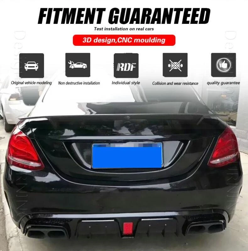 Fitment: Fit For Mercedes Benz C Class W205 C200 C250 C300 C350 C400 Sport C43 Sedan 2014 2015 2016 2017 2018 2019 Specifications: Product Name: Rear Bumper Lip Material: PP Package Size: 148*31*20cm Package Weight: 8.0kg Features: • Made of High Quality Lightweight PP. • Improve the aerodynamic characteristics by enhancing the transition between the high-speed airflow below the vehicle and the free airflow in the surrounding atmosphere. • Provide space for the airflow under the vehicle to decelerate and expand, thereby providing pressure recovery by providing a degree of "wake fill" or more accurately. • Does not cause excessive airflow separation and resistance and keep driving safety. PP Rear Bumper Lip FOR BENZ The Rear Bumper Lip is one of the simplest mods you can do to the exterior of your car that will give your car that completely different look. Not only are spoilers meant for great looks, they also help Prevent the rear of the car from scratching. Fitment: Fit For Mercedes Benz C Class W205 C200 C250 C300 C350 C400 Sport C43 Sedan 2014 2015 2016 2017 2018 2019 Specifications: Product Name: Rear Bumper Lip Material: PP Package Size: 148*31*20cm Package Weight: 8.0kg Features: • Made of High Quality Lightweight PP. • Improve the aerodynamic characteristics by enhancing the transition between the high-speed airflow below the vehicle and the free airflow in the surrounding atmosphere. • Provide space for the airflow under the vehicle to decelerate and expand, thereby providing pressure recovery by providing a degree of "wake fill" or more accurately. • Does not cause excessive airflow separation and resistance and keep driving safety. • Sport style rear diffuser, perfect for decoration, increase both road safety and racing style. Package included: • Car Rear Lip Bumper Body Kits • Mounting Accessories Delivery details Payment and TAX Warranty Policy Return Policy Contact us Delivery details NOTE: The shipping fee is only for the mainland of each country, it does not include the overseas territories, such as Virgin Islands (U.S.) , Puerto Rico, Hawaii , French Reunion Island, etc. But on ebay, when buyers from Puerto Rico and overseas territories , the shipping fee is equal to United States, it is NOT correct,. please contact us for correct shipping fee, or we will cancel the order. Sorry for the inconvenience, and thanks for your cooperation. 1. If you want to upgrade the shipping, please contact us before making payment, we will revise the shipping fee. 2. We will ship according to your Ebay address. Please make sure it is correct and include phone number for delivery. If you want to know the exact shipping time , please contact us . Payment and TAX 1.We accept Multiple Payment Methods Available: Credit Card, Debit Card, Gift Card, Apple Pay, Goggle Pay, PayPal and PayPal Cred. 2.Please leave note for your special request (e.g. Colors or Size) in ebay note when you pay the order. 3.Your must complete the payment within 7 days or Ebay will automatically open unpaid item case For US Buyer:The invoice value of each item is less than 800USD ,so you no need to pay any tariff . NON-US Buyer Note: Most countries are tax free based on our invoices, if tax is required, which will be buyer's responsibility. Warranty Policy We Warranty Our Product Within the Limited Warranty Policy Specified on Ebay. Please Email us if ou have any question regarding the warranty policy on a specific item. Most of the items are Aftermarket Parts and they are intended for off-road usage only, therefore no installation instruction will be included, Professional installation are Highly Recommended. We are not responsible for any damages to the item or the vehicle that occur during the installation of the item.Also, Please Make Sure Proper Installation is Performed as we are not responsible for item being missing or flew off after the installation. if you don't think the item can stay on the car properly, please do not attempt to drive the car with it and please check with professional shops/mechanics or contact us for assistance. Return Policy We Accept Returns Within the Return Period On Ebay. Return Authorization/Return Approval is Required For Every Return. So If you Wish to Make a Return On Your Purchase. Please Contact us Before You Send The item back For any damages occured to the item upon arrival, Please notify us within 5 days of the delivery so we can take proper action to fix the issue. So Please Kindly inspect and check the item condition upon arrival.For Any other Return Inquries, You can contact us within the return period to obtain return authorization/return approval. In case of return, the merchandise needs to be returned in original condition with origi- nal packaging in order to be eligible for an exchange or a refund. Items must be not opened in their original package. Any mark of installation, mounting, cutting, scratch or using will not be allowed. Contact us 1.We are trying our best to explain all details of the products here! If you have any question, please feel free to contact us by Ebay message, and We will get back to you within 24-48 hours. 2.Customer satisfaction is our NO.1 priority. If you are not happy with the item that you purchase, please contact us first. We will try our best to solve the problem with you.Please leave us a positive feedback if you receive the item.Please do not leave negative or neutral feedback without any contact.If you haven't received item in 30 days, please contact us and we will arrange refund.We appreciate your business.Happy Bidding & Have a nice day! 3.Working hours: From 8 a.m. to 6 p.m. from Monday to Friday. From 8 a.m. to 12 a.m. on Saturday morning Holiday/Rest time: Saturday afternoon and Sunday