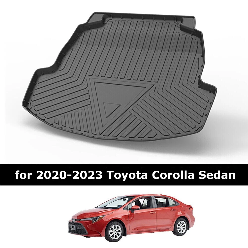 Feature1: Liners raised and strengthened lip for protects carpet floor Material: TPO Brand: Unbranded Placement on Vehicle: Cargo/Trunk Manufacturer Part Number: Does Not Apply Color: Black Type: Cargo Liner Features: Foldable Fitment Type: Direct Replacement Country/Region of Manufacture: China Feature3: All weather safe and reliable protection For Car Years: Toyota Corolla Sedan 2020-2023 Number of Pieces: 1 Modified Item: No Feature2: Easy to clean and waterproof