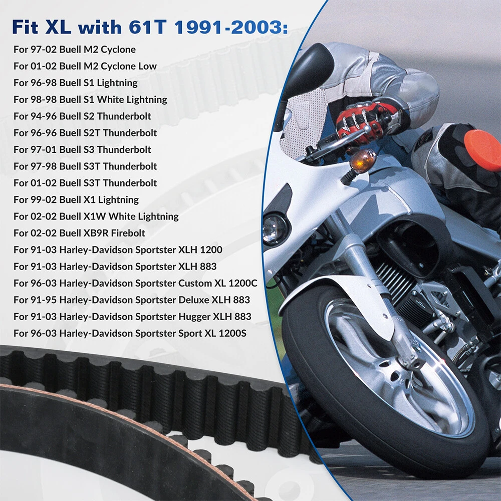 Store Categories Store Categories eBay Motors Parts & Accessories Automotive Tools & Supplies Details Rear Drive Belt For 91-03 Harley Davidson Sportster 883 1200 XL XLH 1200C 1200S Item Description: 100% quality assurance tested, more responsive, less expensive, easier to install. Belt aging may lead to breakage, slippage, etc. It is recommended to replace it within 30,000 kilometers. This belt has a parabolic tooth design to reduce vibration and noise. Possible reasons for frequent belt breaks: (Except for the quality problem of the belt itself) 1. The sliding surface of the pulley and the driving disc is worn, or there is an included angle due to improper assembly. 2. The front moving wheel or the rear pulley is deformed. 3. The problem with the automatic clutch. 4. The middle of the clutch is not tight. OE Number: 40022-91/ 62-0945/ 58-420/ 1204-0042. Fitment: Fit XL with 61T 1991-2003: For 97-02 Buell M2 Cyclone. For 01-02 Buell M2 Cyclone Low. For 96-98 Buell S1 Lightning. For 98-98 Buell S1 White Lightning. For 94-96 Buell S2 Thunderbolt. For 96-96 Buell S2T Thunderbolt. For 97-01 Buell S3 Thunderbolt. For 97-98 Buell S3T Thunderbolt. For 01-02 Buell S3T Thunderbolt. For 99-02 Buell X1 Lightning. For 02-02 Buell X1W White Lightning. For 02-02 Buell XB9R Firebolt. For 91-03 Harley-Davidson Sportster XLH 1200. For 91-03 Harley-Davidson Sportster XLH 883. For 96-03 Harley-Davidson Sportster Custom XL 1200C. For 91-95 Harley-Davidson Sportster Deluxe XLH 883. For 91-03 Harley-Davidson Sportster Hugger XLH 883. For 96-03 Harley-Davidson Sportster Sport XL 1200S. Vehicle compatibility charts are for REFERENCE ONLY. Check product type and size to match your needs. Material & Color: Material: Made of High Quality Rubber. Color: As Picture. Package Included: 1x Rear Drive Belt. (100% Brand New Never Used Or Installed) Note: Please check the OE code on your old part before purchasing! It would be highly appreciated if you might contact us first once you have any problems concerning the items. And you can expect all the issues would be resolved ASAP! About Us Shipping Policy Payment Method Returns Policy Contact Us About Us High-performance automotive components that pass stringent durability and functionality tests, ensuring longevity under demanding conditions. We combine cutting-edge logistics with uncompromised quality, making vehicle maintenance faster, simpler, and more efficient. With a user - friendly shopping environment and efficient customer service, we strive to offer you a seamless shopping experience. 24/7 customer support available—follow us for updates! Shipping Policy All items are shipped from our United States local warehouse. All orders will be shipped within 3 business days after payment is cleared. We only ship to Paypal confirmed address, please make sure that the address is correct before you check out. Payment Method Please use the eBay checkout system when paying for your order. Paypal allows to pay by Credit Card, Direct Debit, VISA, eCheck, or other methods, please kindly check Paypal for more information. Returns Policy 30 Days Free Return and Money Back. If you are not satisfied with your purchase for any reason ( and the part is brand new, has not been installed or damaged in any way) please return it within 30 days for a refund. Please contact us before return. Contact Us Customer satisfaction is always our top priority! If you have any questions while shopping,please contact us first via eBay Messaging—we’re here to resolve issues swiftly and ensure your satisfaction! Before submitting your feedback, if you have any concerns or require assistance, please feel free to reach out through our channels. We firmly believe that through open communication, we can prevent unnecessary misunderstandings and work together to provide you with a satisfactory resolution. Home Payment Shipping About us Contact us Store Categories Store Categories eBay Motors Parts & Accessories Automotive Tools & Supplies Details Rear Drive Belt For 91-03 Harley Davidson Sportster 883 1200 XL XLH 1200C 1200S Item Description: 100% quality assurance tested, more responsive, less expensive, easier to install. Belt aging may lead to breakage, slippage, etc. It is recommended to replace it within 30,000 kilometers. This belt has a parabolic tooth design to reduce vibration and noise. Possible reasons for frequent belt breaks: (Except for the quality problem of the belt itself) 1. The sliding surface of the pulley and the driving disc is worn, or there is an included angle due to improper assembly. 2. The front moving wheel or the rear pulley is deformed. 3. The problem with the automatic clutch. 4. The middle of the clutch is not tight. OE Number: 40022-91/ 62-0945/ 58-420/ 1204-0042. Fitment: Fit XL with 61T 1991-2003: For 97-02 Buell M2 Cyclone. For 01-02 Buell M2 Cyclone Low. For 96-98 Buell S1 Lightning. For 98-98 Buell S1 White Lightning. For 94-96 Buell S2 Thunderbolt. For 96-96 Buell S2T Thunderbolt. For 97-01 Buell S3 Thunderbolt. For 97-98 Buell S3T Thunderbolt. For 01-02 Buell S3T Thunderbolt. For 99-02 Buell X1 Lightning. For 02-02 Buell X1W White Lightning. For 02-02 Buell XB9R Firebolt. For 91-03 Harley-Davidson Sportster XLH 1200. For 91-03 Harley-Davidson Sportster XLH 883. For 96-03 Harley-Davidson Sportster Custom XL 1200C. For 91-95 Harley-Davidson Sportster Deluxe XLH 883. For 91-03 Harley-Davidson Sportster Hugger XLH 883. For 96-03 Harley-Davidson Sportster Sport XL 1200S. Vehicle compatibility charts are for REFERENCE ONLY. Check product type and size to match your needs. Material & Color: Material: Made of High Quality Rubber. Color: As Picture. Package Included: 1x Rear Drive Belt. (100% Brand New Never Used Or Installed) Note: Please check the OE code on your old part before purchasing! It would be highly appreciated if you might contact us first once you have any problems concerning the items. And you can expect all the issues would be resolved ASAP! About Us Ship