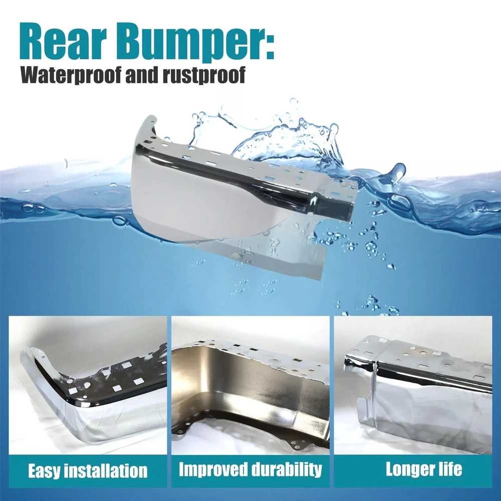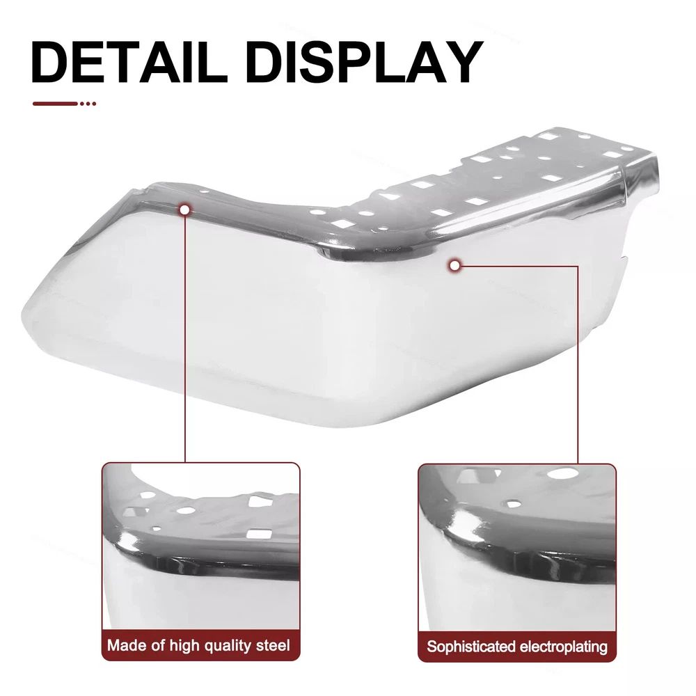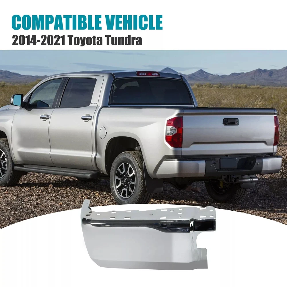 Specifiction: Brand New in the Box - Fit and Quality Guaranteed! Color:Silver Surface Finish:Chrome Material:Steel Placement on Vehicle:Rear Left Aftermarket Replace Number for # 521520C030, TO1104123 Note: Without parking aid sensor holes Fits for For Toyota Tundra 2014-2021 Package: 1x Left Bumper End Cap