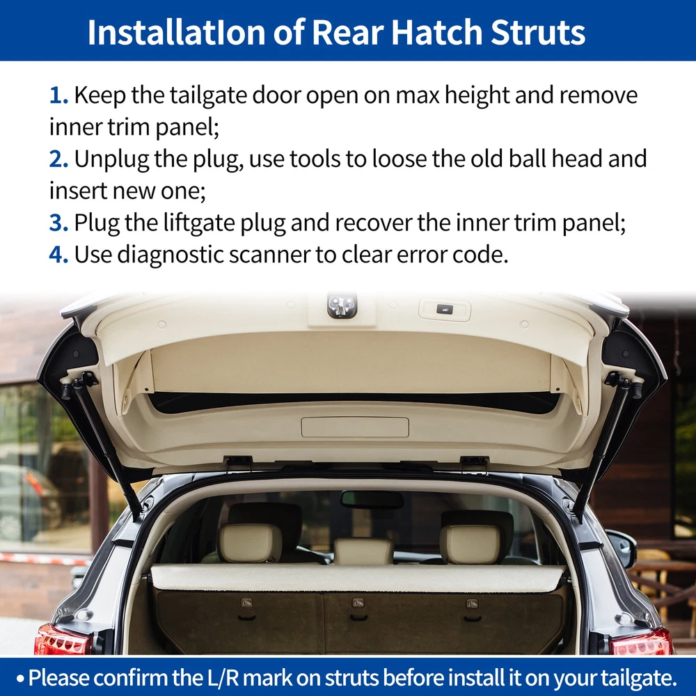 Document OE Number:63320SJ011/63329SJ010/63329SJ011Fitment of Power LIft Struts:for Subaru Forester 2019-2024Specification of Liftgate Power Support Shock StrutMaterial: Carbon SteelInstall Place: Rear LeftInclude: 1 Pcs Tailgate Power Lift SupportFeatures of Tailgate Power Lift SupportThis Shocks for rear hatch will be aging, cracking, rusty connector etc. after long-term use.Replace rear hatch struts kit when the trunk door have noisy sound or clunky that hard to open and close.Instead of manually operate, this electric tailgate lift relying an actuator and plug to achieve remote control by key fob, built-in electric motor will driving and guide the electric strut to extend or contract.Installation of Rear Gate Power Support Shock1. Keep the tailgate door open on max height and remove inner trim panel.2. Unplug the plug, use tools to loose the old spherical joint and insert new one.3. Plug the liftgate plug and recover the inner trim panel.4. Use diagnostic scanner to clear error code, just use scanner to clear if show negative/occasional; replace the lift struts if show permanent.5.Confirm the L/R mark on struts before install it on your tailgate.Ways to Active Tailgate Remote Function1. Push the trunk close button.2. Close the tailgate by hand slowly and push the trunk open button.3. Use diagnostic scanner to reset control module and push trunk close button. Rear LH Tailgate Power Lift Support for Subaru Forester 2019-2024 No.63320SJ011 OE Number: 63320SJ011/63329SJ010/63329SJ011 Fitment of Power LIft Struts: for Subaru Forester 2019-2024 Specification of Liftgate Power Support Shock Strut Material: Carbon Steel Install Place: Rear Left Include: 1 Pcs Tailgate Power Lift Support Features of Tailgate Power Lift Support This Shocks for rear hatch will be aging, cracking, rusty connector etc. after long-term use. Replace rear hatch struts kit when the trunk door have noisy sound or clunky that hard to open and close. Instead of manually operate, this electric tailgate lift relying an actuator and plug to achieve remote control by key fob, built-in electric motor will driving and guide the electric strut to extend or contract. Installation of Rear Gate Power Support Shock 1. Keep the tailgate door open on max height and remove inner trim panel. 2. Unplug the plug, use tools to loose the old spherical joint and insert new one. 3. Plug the liftgate plug and recover the inner trim panel. 4. Use diagnostic scanner to clear error code, just use scanner to clear if show negative/occasional; replace the lift struts if show permanent. 5.Confirm the L/R mark on struts before install it on your tailgate. Ways to Active Tailgate Remote Function 1. Push the trunk close button. 2. Close the tailgate by hand slowly and push the trunk open button. 3. Use diagnostic scanner to reset control module and push trunk close button. ITEM SPECIFICS Brand switchpart Type Tailgate Power Lift Support Placement on Vehicle Rear Color Black Material Carbon Steel Manufacturer Part Number 63320SJ011/63329SJ010 OE/OEM Part Number 63320SJ011/63329SJ010 Manufacturer Warranty none Universal Fitment No Interchange Part Number 63320SJ011/63329SJ010 Superseded Part Number 63320SJ011/63329SJ010 Product Name Tailgate Power Lift Support Net Weight 1483g Shell Color Black Other Part Number 63320SJ011/63329SJ010 Dimension 30.7"x6.3"x3.35" Package Content 1 Pcs Tailgate Power Lift Support Note This is not oem product,accessory only. NOTICE If you have any questions, please feel free to contact our customer service. Our response will be faster than eBay! Our Handling Time: within 24 hours on weekdays eBay Handling Time: 72 hours ABOUT US SHIPPING POLICY PAYMENT RETURN CONTACT US We are committed to providing professional, safe and effective personal care products. We strive to provide customers loved products at the competitive price. We work with suppliers to discover practical, easy-to-use personal care products. Our store not only offers quality products at the competitive price, but also has professional customer service, offers you comfortable shopping experience. Please don't forget to follow us on eBay. We will continue to update and provide more and more practical personal care products. switchpart thank you for your business! We work hard to safely and securely ship your order in the least amount of time. Storewide free shipping in United States. All our items will be shipped to buyer's address, please confirm your address on eBay before you purchase. Taxes and other charges are included in the item price or shipping charges. Buyers are responsible for these charges. We accept payment methods show in payment details. Payment must be received within 7 days of auction closing. According to eBay guidelines, all unpaid purchases case will be opened automatically. If you need to specify the color or other information for the items you purchased, please Click here to contact us directly with item # and your eBay ID. We offer a 30 day return policy. This is under the following conditions: The item must be unused and in a resalable condition otherwise are not eligible for a refund. All items returned by post are returned at your expense, we cannot be held responsible for this. Please use a traceable service. Generally we answer emails within 24 hours (excluding weekends & holidays). Questions or comments? We welcome your inquiry! Please feel free to contact us directly. Description Policy Rear LH Tailgate Power Lift Support for Subaru Forester 2019-2024 No.63320SJ011 OE Number: 63320SJ011/63329SJ010/63329SJ011 Fitment of Power LIft Struts: for Subaru Forester 2019-2024 Specification of Liftgate Power Support Shock Strut Material: Carbon Steel Install Place: Rear Left Include: 1 Pcs Tailgate Power Lift Support Features of Tailgate Power Lift Support This Shocks for rear hatch will be aging, cracking, rusty connector etc. after long-term use. Replace rear hatch struts kit when the trunk door have noisy sound or clunky that hard to op