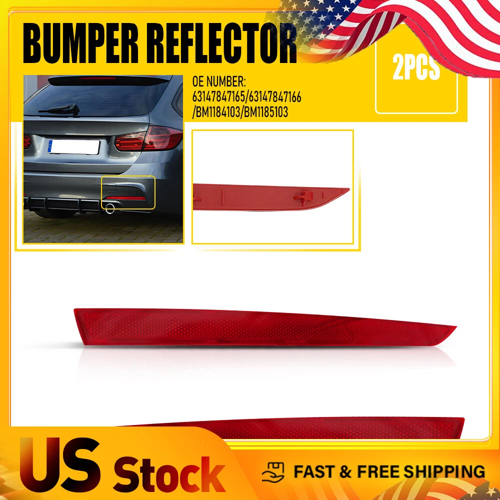 OE/OEM Part Number: 63147847165/63147847166 Features: DOT-Certified, ISO-Certified Lens color: Red Fitment: For BMW 2012-2017 F30 F31 Placement on Vehicle: Rear Right, Left Manufacturer Warranty: 2 Years Material: ABS gtin13: Does not apply Brand: AUXITO Fitment Type: Direct Replacement Universal Fitment: No Type: Bumper Reflector UPC: Does not apply Easy & Hassle Free Returns: Yes, Free Return
