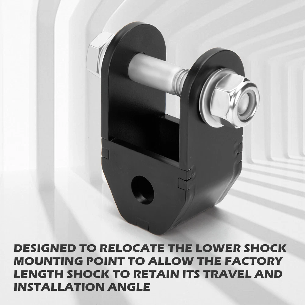Compatiable With 1999-2022 Chevrolet Silverado 1500 2WD/4WD 1999-2022 GMC Sierra 1500 2WD/4WD 2007-2021 GMC Yukon 6-Lug 2WD 4WD 2007-2021 GMC Yukon XL 6-Lug 2WD 4WD 2007-2013 Chevy Avalanche 6-Lug 2WD 4WD 2007-2021 Chevy Suburban 1500 6-Lug 2WD 4WD 2007-2021 Chevy Tahoe 6-Lug 2WD 4WD 2007-2021 Cadillac Escalade 2WD 4WD Not fit air suspension Not fit auto Level system Our shock extensions are ideal for when you install a rear lift block and your shocks are too short. These extensions allow you to retain use of the factory shocks or factory length shocks, we provide the high quality set constructed with carbon steel, which can greatly improve the using lift and the black powder coated process makes it rust and corrision resistant. On Oct 24, 2024 at 12:27:35 PDT, seller added the following information: