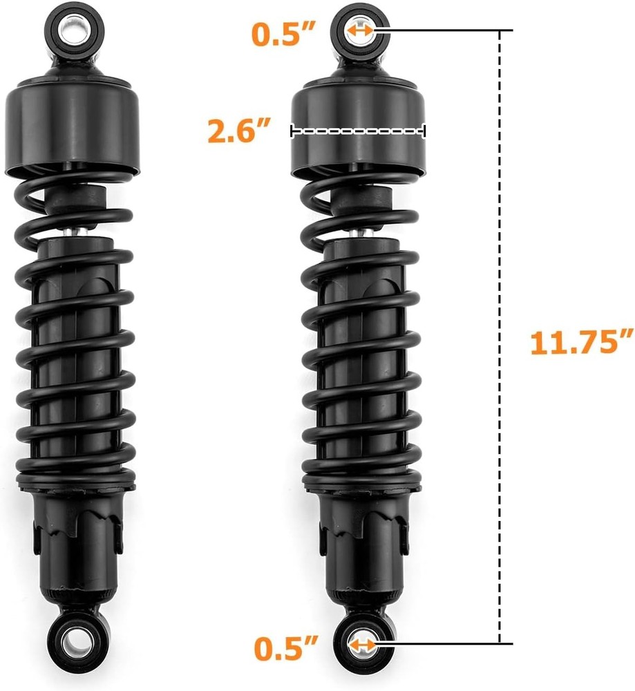 Rear Shocks Lowering Kit 11.75" Adjustable Black for Harley Touring 1980-2025 Product Details Brand: Branded Auto Part Position: Rear Style: Modern Vehicle Service Type: Motorcycle Exterior Finish: Bright Black Material: Metal Extended Length: 11.75 Inches Automotive Fit Type: Vehicle Specific Fit Manufacturer: does not apply Model: Rear Shocks Lowering Kit Item Weight: 9.04 pounds Package Dimensions: 15.43 x 9.33 x 3.9 inches Item model number: 901050MU26#Touring Manufacturer Part Number: 901050MU26#Touring Brand: Branded Auto Part Position: Rear Style: Modern Vehicle Service Type: Motorcycle Exterior Finish: Bright Black 【Fitment】: Compatible with Harley Touring Tour Glide FLT, fit Electra Glide FLHT, fit Road King FLHR, fit Road Glide FLTR, fit Street Glide FLHX 1980-2025. (Excluding Trike and Models with Fork Cartridge) 【Specifications】: Eye to eye Length: 11.75 inch (298mm). Finish: Black. Preload adjustable to tune to rider weight. 【High Performance】: Progressively wound springs for a smooth, comfortable ride. This shock offer a lower position than the stock on rear,that will make riding more comfortable. It can offer a better riding position and give your bike a new clear look with the rear lowering. 【Installation】: Easy bolt-on application. 【Package Including】: 1x Pair Touring rear shocks. Fitment List:Compatible with 1984-2024 Harley Touring FLT/FLHT/FLHR/FLTR/FLHX (Excluding Trike And Models With Fork Cartridge)Compatible with 2006-2024 Street Glide FLHXCompatible with 2014-2023 Street Glide Special FLHXSCompatible with 2022-2023 Street Glide ST FLHXSTCompatible with 2010-2012, 2015-2024 CVO Street Glide FLHXSECompatible with 1994-2022 Road King FLHR/ICompatible with 1998-2019 Road King Classic FLHRC/I / 2004-2007 Road King Custom FLHRS/ICompatible with 2017-2024 Road King Special FLHRXSCompatible with 2002-2003, 2007-2008, 2013-2014 CVO Road King FLHRSECompatible with 1998-2009, 2015-2024 Road Glide FLTR/I, FLTRXCompatible with 2000-2001, 2009 CVO Road Glide FLTRSECompatible with 2011-2013, 2016-2019 Road Glide Ultra FLTRUCompatible with 2011, 2015-2016 CVO Road Glide Ultra FLTRUSECompatible with 2010-2013 Road Glide Custom FLTRXCompatible with 2015-2023 Road Glide Special FLTRXSTCompatible with 2022-2023 Road Glide ST FLTRXST / 2020-2024 Road Glide Limited FLTRKCompatible with 2012-2013, 2018 CVO Road Glide Custom FLTRXSECompatible with 1984-1985 Electra Glide FLH / 1984-1985 Electra Glide Special FLHXCompatible with 1984,1987-1993 Electra Glide Sport FLHS / 1986-1987,1995-2009, 2009-2022 Electra Glide Standard FLHT/ICompatible with 1984-2013 Electra Glide Classic FLHTC/I / 2004-2005 CVO Electra Glide FLHTCSECompatible with 1989-2019 Electra Glide Ultra Classic FLHTCU/ICompatible with 2014-2019 Electra Glide Ultra Classic Twin-Cooled FLHTCU TCCompatible with 2015-2016 Electra Glide Ultra Classic Low FLHTCULCompatible with 2015-2016 Electra Glide Ultra Classic Low Twin-Cooled FLHTCUL TC / 2023 Electra Glide Highway KingCompatible with 2006-2013 CVO Electra Glide Ultra Classic FLHTCUSECompatible with 2010-2024 Ultra Limited FLHTKCompatible with 2015-2019 Ultra Limited Low FLHTKLCompatible with 2014-2022 CVO Limited FLHTKSECompatible with 1984-1991 Tour Glide Classic FLTC / 1989-1996 Ultra Classic Tour Glide FLTCU/I