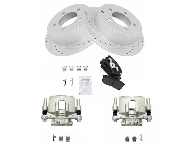 Rear TRQ Brake Pad Rotor and Caliper Set fits Chrysler Sebring 2007-2010 53RPQD Rear TRQ Brake Pad Rotor and Caliper Set fits Chrysler Sebring 2007-2010 53RPQD Position: Rear Brand: TRQ Brake Pad Rotor and Caliper Set Condition: New Product Description Notes: Semi-Metallic Performance Brake Pad & Rotor Kit with Calipers Features: Semi-Metallic Improved Stopping Power: Cross-drilled slotted to reduce brake fade Longer Lasting: True non-interference vane design for optimized cooling Positive Molded: Less dust resulting in cleaner wheels Multi-Layer Shim: Reduced noise and vibration Direct Replacement: No modifications necessary Product Specifications Wheel Lug Count: 5 Lug Coating: Premium G-Coated Grade Type: Performance Type: Performance Surface Type: Slotted X Drilled Brake Rotor Diameter: 10.31 in. (262mm) Package Contents: (2) Rear Brake Calipers with Hardware; (1) Rear Semi-Metallic Brake Pad Set with Contact Point Grease & Hardware; (2) Rear G-Coated Performance Brake Rotors Detailed Applications Years Vehicle 2007-2010 Chrysler Sebring Warranty Coverage Policy 12 Month Warranty 30 Day Return Policy Return shipping paid by: Buyer Item must be returned within: 30 Days Refund will be given as: Money Back DO NOT SEND RETURNS BACK WITHOUT A VALID RMA NUMBER If you have an issue after receiving your part, please email us directly through eBay