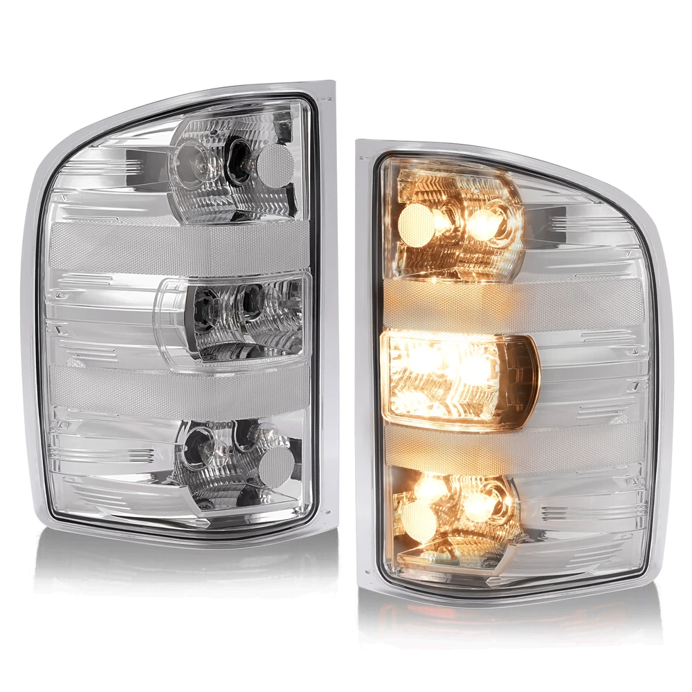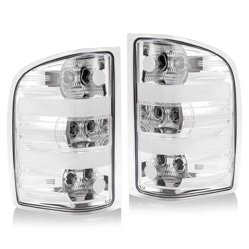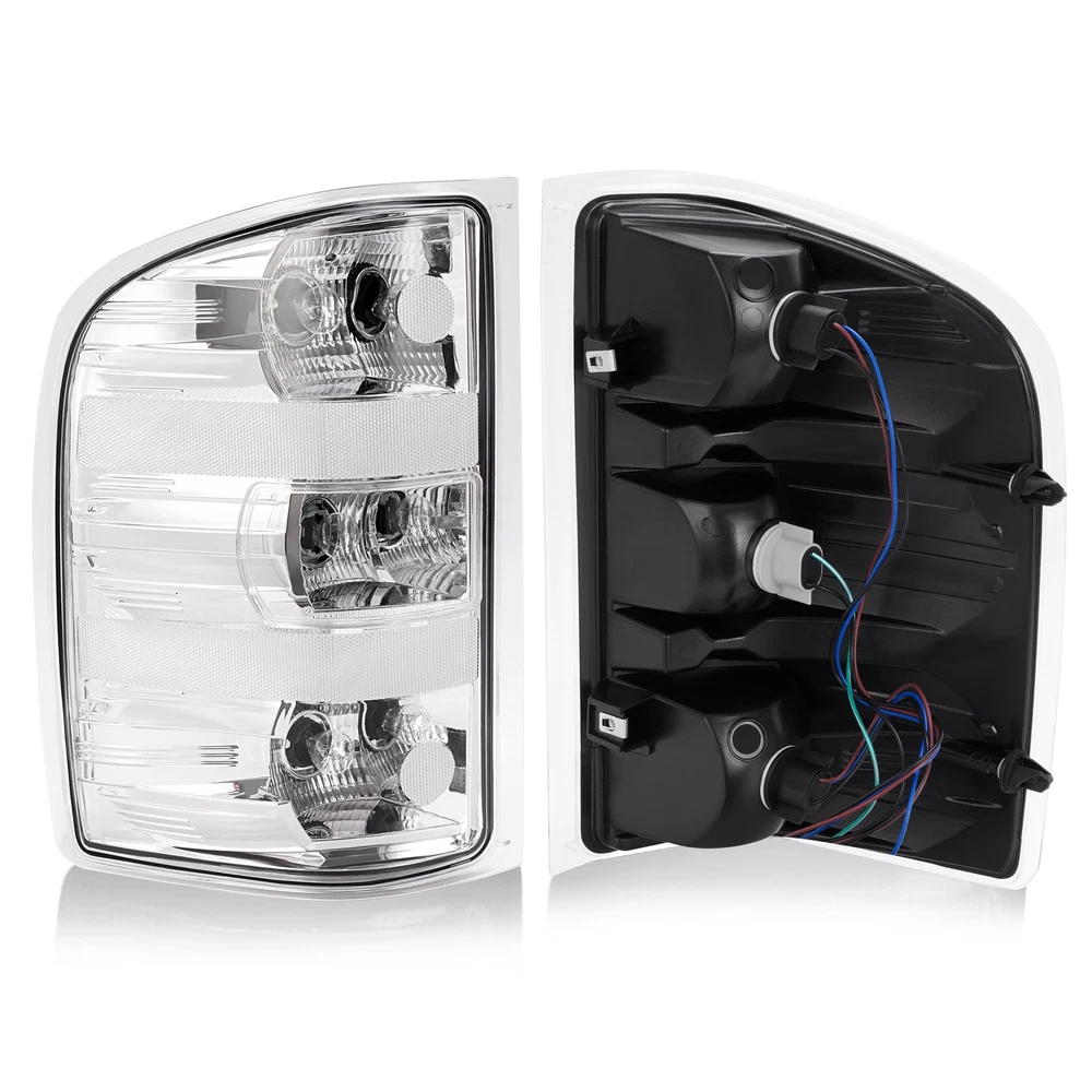 Rear Tail Lights Lamps For Chevy Silverado Pickup 2007-2014 w/Bulbs Chrome Clear Specification Location: Left, Right, Rear Material: Plastic Lens Color: Clear Housing Color: Chrome Bulbs Included: With bulb(s) Installation method: Screw-On Manufacturer Warranty: 1 Year Replace For 25906843, 25877455, 15201850, 25958483, GM2800207, 25906842, 25877454, 15201849, 25958482, GM2801207 Fitment For Chevrolet For 2010 Silverado 1500 XFE 1st Design, For Models With 3047 Type Reverse Light Bulb (Bigger and Brighter) For 2007 Silverado 1500 (submodel: LT, LTZ, WT) New Body Style, 1st Design, For Models With 3047 Type Reverse Light Bulb (Bigger and Brighter) For 2008-2010 Silverado 1500 (submodel: LS, LT, LTZ, WT) 1st Design, For Models With 3047 Type Reverse Light Bulb (Bigger and Brighter) For 2011-2013 Silverado 1500 (submodel: LS, LT, LTZ, WT, XFE) For 2007 Silverado 2500 HD (submodel: LT, LTZ, WT) New Body Style For 2008-2010 Silverado 2500 HD (submodel: LT, LTZ, WT) For 2011 Silverado 2500 HD (submodel: LT, LTZ, WT) For Models With Single Rear Wheels For 2012-2014 Silverado 2500 HD (submodel: LT, LTZ, WT) For Models With Single or Dual Rear Wheels For 2007 Silverado 3500 HD (submodel: LT, LTZ, WT) New Body Style For 2008-2010 Silverado 3500 HD (submodel: LT, LTZ, WT) For 2011 Silverado 3500 HD (submodel: LT, LTZ, WT) For Models With Single Rear Wheels For 2012-2014 Silverado 3500 HD (submodel: LT, LTZ, WT) For Models With Single or Dual Rear Wheels For GMC For 2012-2013 Sierra 1500 (submodel: SL, SLE) For 2012-2014 Sierra 2500 HD (submodel: SLE, SLT, WT) For Models With Dual Rear Wheels For 2007 Sierra 3500 HD (submodel: SLE, SLT, WT) New Body Style, 1st Design, For Models With 3047 Type Reverse Light Bulb (Bigger and Brighter) and Dual Rear Wheels For 2008-2010 Sierra 3500 HD (submodel: SLE, SLT, WT) 1st Design, For Models With 3047 Type Reverse Light Bulb (Bigger and Brighter) and Dual Rear Wheels For 2012-2014 Sierra 3500 HD (submodel: SLE, SLT, WT) For Models With Dual Rear Wheels Feature Easy to install: Direct replacement, drilling and cutting are not required. Superior quality: Superior material with toughness and heat resistance functions. Waterproof: High waterproof tail lights can be fully adapted to all kinds of weather High brightness: The light helps drivers foresee potential road risks sooner and avoid rear-end collisions. Packing List 1 x Pair of Tail Lights W/ Bulbs Structural and Functional Guidelines Included Shipping All items will be shipped out in 1 business day, no expedited service available. (USA only, Does NOT include Hawaii, Alaska or Puerto Rico, PO Boxes/APO's) Contact us Any Questions, Just feel free to contact us on eBay. We will reply you in 1 business day. On Dec 23, 2024 at 01:42:07 PST, seller added the following information: On Dec 23, 2024 at 23:48:43 PST, seller added the following information: