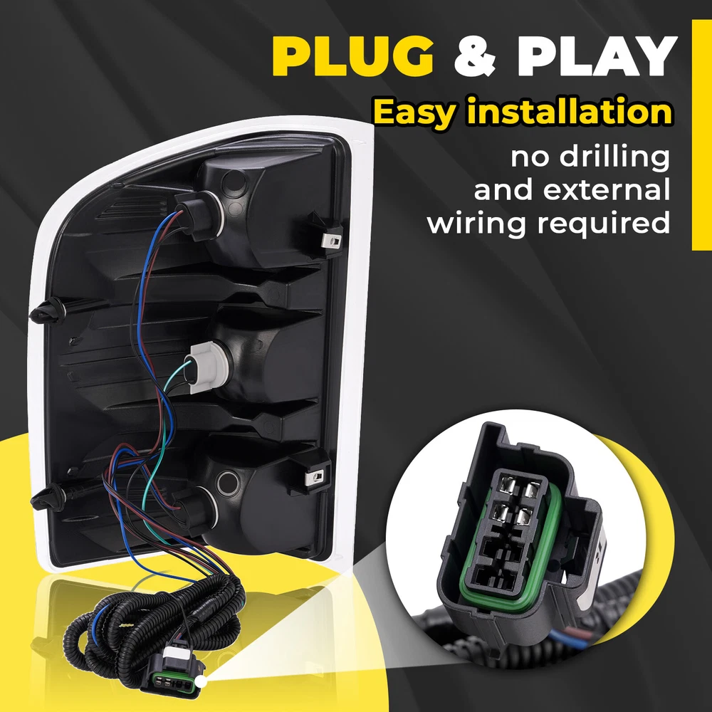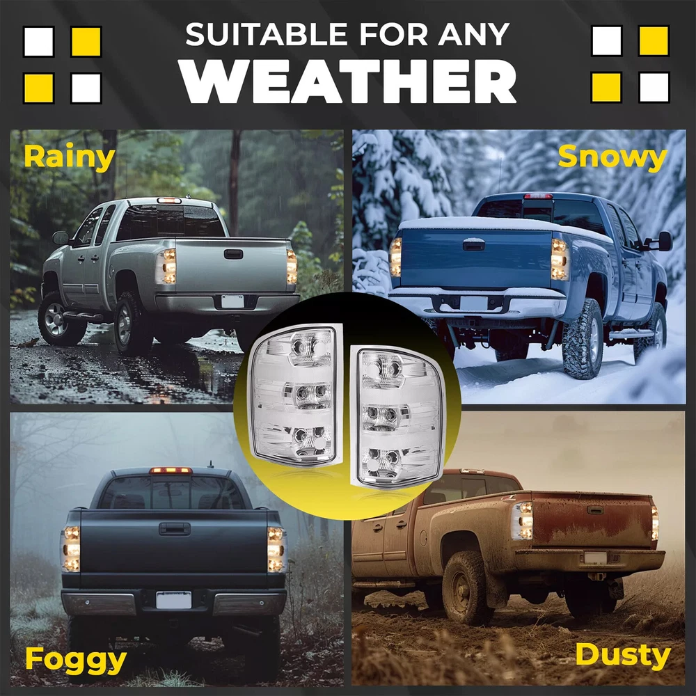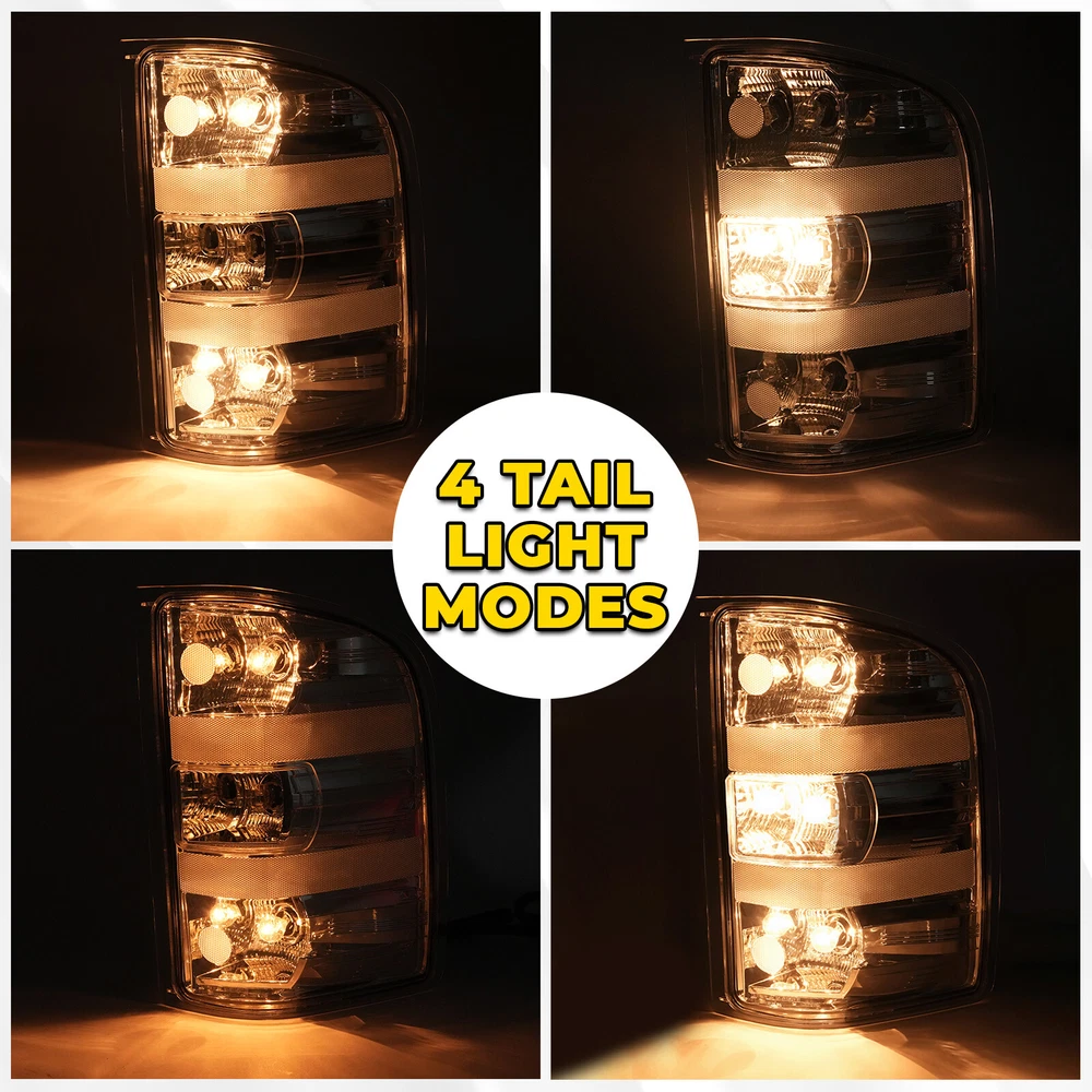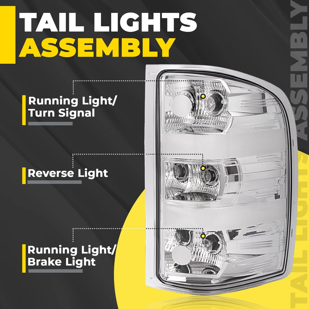 Rear Tail Lights Lamps For Chevy Silverado Pickup 2007-2014 w/Bulbs Chrome Clear Specification Location: Left, Right, Rear Material: Plastic Lens Color: Clear Housing Color: Chrome Bulbs Included: With bulb(s) Installation method: Screw-On Manufacturer Warranty: 1 Year Replace For 25906843, 25877455, 15201850, 25958483, GM2800207, 25906842, 25877454, 15201849, 25958482, GM2801207 Fitment For Chevrolet For 2010 Silverado 1500 XFE 1st Design, For Models With 3047 Type Reverse Light Bulb (Bigger and Brighter) For 2007 Silverado 1500 (submodel: LT, LTZ, WT) New Body Style, 1st Design, For Models With 3047 Type Reverse Light Bulb (Bigger and Brighter) For 2008-2010 Silverado 1500 (submodel: LS, LT, LTZ, WT) 1st Design, For Models With 3047 Type Reverse Light Bulb (Bigger and Brighter) For 2011-2013 Silverado 1500 (submodel: LS, LT, LTZ, WT, XFE) For 2007 Silverado 2500 HD (submodel: LT, LTZ, WT) New Body Style For 2008-2010 Silverado 2500 HD (submodel: LT, LTZ, WT) For 2011 Silverado 2500 HD (submodel: LT, LTZ, WT) For Models With Single Rear Wheels For 2012-2014 Silverado 2500 HD (submodel: LT, LTZ, WT) For Models With Single or Dual Rear Wheels For 2007 Silverado 3500 HD (submodel: LT, LTZ, WT) New Body Style For 2008-2010 Silverado 3500 HD (submodel: LT, LTZ, WT) For 2011 Silverado 3500 HD (submodel: LT, LTZ, WT) For Models With Single Rear Wheels For 2012-2014 Silverado 3500 HD (submodel: LT, LTZ, WT) For Models With Single or Dual Rear Wheels For GMC For 2012-2013 Sierra 1500 (submodel: SL, SLE) For 2012-2014 Sierra 2500 HD (submodel: SLE, SLT, WT) For Models With Dual Rear Wheels For 2007 Sierra 3500 HD (submodel: SLE, SLT, WT) New Body Style, 1st Design, For Models With 3047 Type Reverse Light Bulb (Bigger and Brighter) and Dual Rear Wheels For 2008-2010 Sierra 3500 HD (submodel: SLE, SLT, WT) 1st Design, For Models With 3047 Type Reverse Light Bulb (Bigger and Brighter) and Dual Rear Wheels For 2012-2014 Sierra 3500 HD (submodel: SLE, SLT, WT) For Models With Dual Rear Wheels Feature Easy to install: Direct replacement, drilling and cutting are not required. Superior quality: Superior material with toughness and heat resistance functions. Waterproof: High waterproof tail lights can be fully adapted to all kinds of weather High brightness: The light helps drivers foresee potential road risks sooner and avoid rear-end collisions. Packing List 1 x Pair of Tail Lights W/ Bulbs Structural and Functional Guidelines Included Shipping All items will be shipped out in 1 business day, no expedited service available. (USA only, Does NOT include Hawaii, Alaska or Puerto Rico, PO Boxes/APO's) Contact us Any Questions, Just feel free to contact us on eBay. We will reply you in 1 business day. On Dec 23, 2024 at 01:42:07 PST, seller added the following information: On Dec 23, 2024 at 23:48:43 PST, seller added the following information: