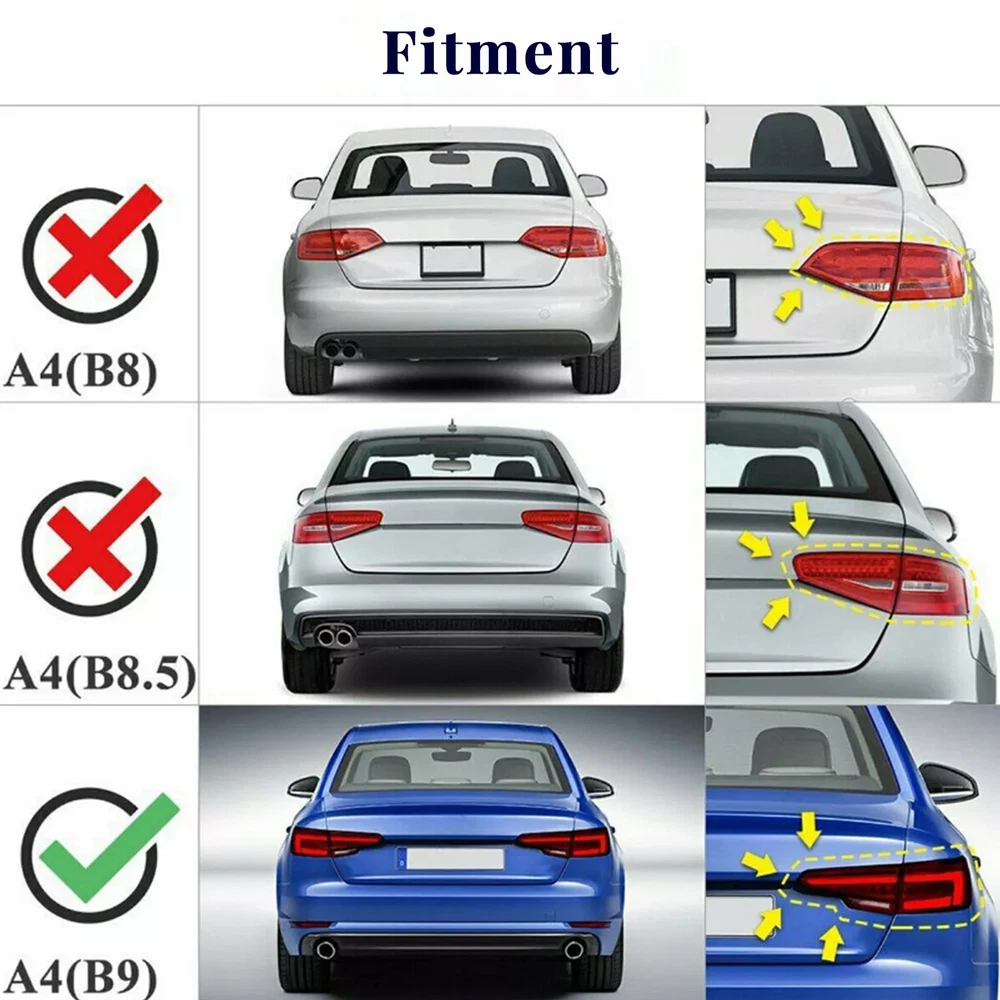Rear Trunk Spoiler Wing for 2017-2024 Audi A4 S4 B9 Sedan High Kick Glossy Black Compatibility 2017 - 2023 Audi A4 /S4 B9 Sedan Features 100% Brand New Never Used or Installed Provides effective drop force Clear texture, h igh gloss and smooth feel Increases grip, improves balance and enhances fuel economy Reduces air resistance at high speeds -Improves stability when driving Enhances appearance and adds stylish individualism. Prevent the car from being scrape d and improve the level of the decoration of the car. H-Style Trunk Spoiler Lip A great Upgrade For Your Vehicle Specifications Style: High Kick Type: Trunk spoiler Material: ABS Color: Glossy Black Installation: Adhesive Third Brake Light: Without Package includes 1 x Rear Spoiler INSTALLATION INSTRUCTION IS NOT INCLUDED About us WANGXIAUTO specializes in providing premium automotive exterior accessories, including spoilers, wings, taillights, and pedals. With rigorous quality control and a focus on material integrity and durability, we ensure every product meets high standards of craftsmanship and compatibility. Customer-centric at our core, we offer expert purchasing support and reliable after-sales service to help every car owner achieve a safe and satisfying vehicle upgrade. Delivery details We ship all orders to the United States via FedEx Ground or Home Delivery. Please provide a physical street address for delivery, as FedEx cannot deliver to PO Boxes. Typical delivery time is 1-6 business days. For sales tax, eBay collects and remits applicable state sales tax for all U.S. orders in accordance with local regulations. For more details, please refer to eBay's help article "Taxes and import charges". Return details We offer a straightforward 90-day return policy from the date of purchase. Should you need to initiate a return or refund, please contact our customer service team within 5 business days of receiving the item. To help us assist you promptly, kindly provide a detailed description of the issue along with supporting photographs for verification. If the item is returned in its original, unused condition, you will receive a full refund with no restocking fees. Should your item arrive incorrect, damaged, or not as described, please contact us immediately. Our team is committed to working with you to promptly resolve any issues and ensure your complete satisfaction. Before completing your order, we strongly recommend confirming all item specifications to ensure compatibility with your vehicle. Our customer service team is available to assist with any product selection questions. Feedback If you're satisfied with your purchase, we'd be grateful if you could take a moment to leave us positive feedback - your support is very important to us! Please contact us before leaving neutral (3-star) or negative (1-2 star) feedback.We'll actively work to address the problem and strive to ensure your satisfaction. Contact us Our working hours are: US Eastern Standard Time | Sunday to Thursday | 21:00 pm to 7:00 am Orders and emails will be processed for you during this time, any questions you can leave a message to us, if we do not have the first time to give you an answer, we hope you can understand, we will be the first time to deal with your problems first when we are at work.