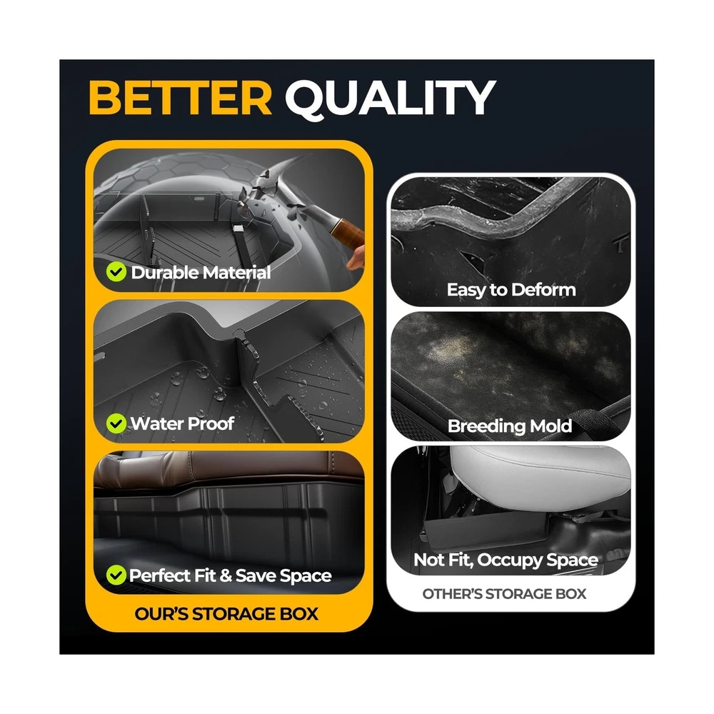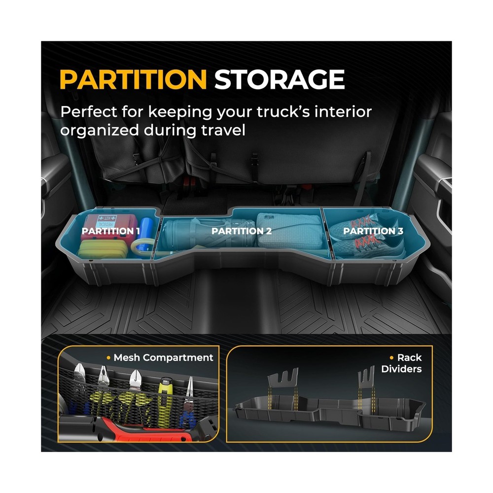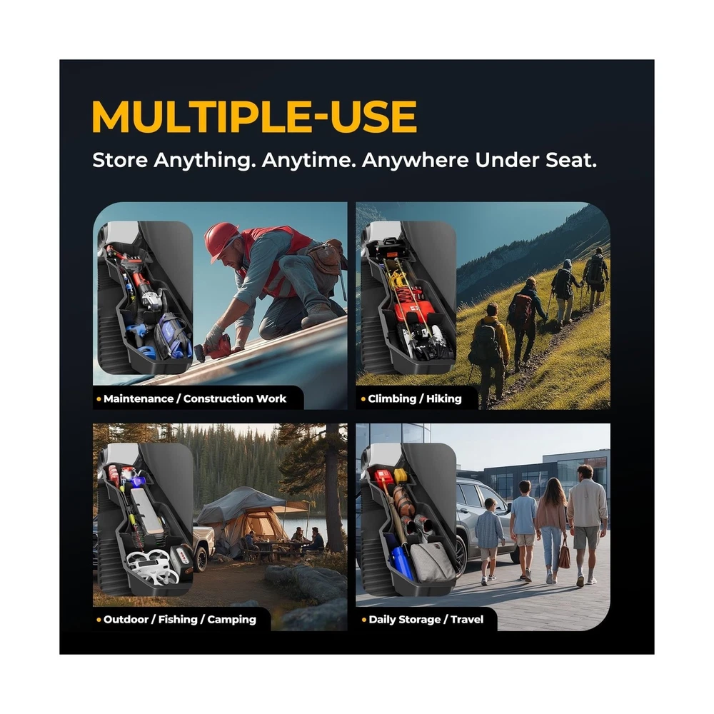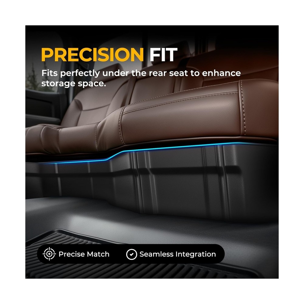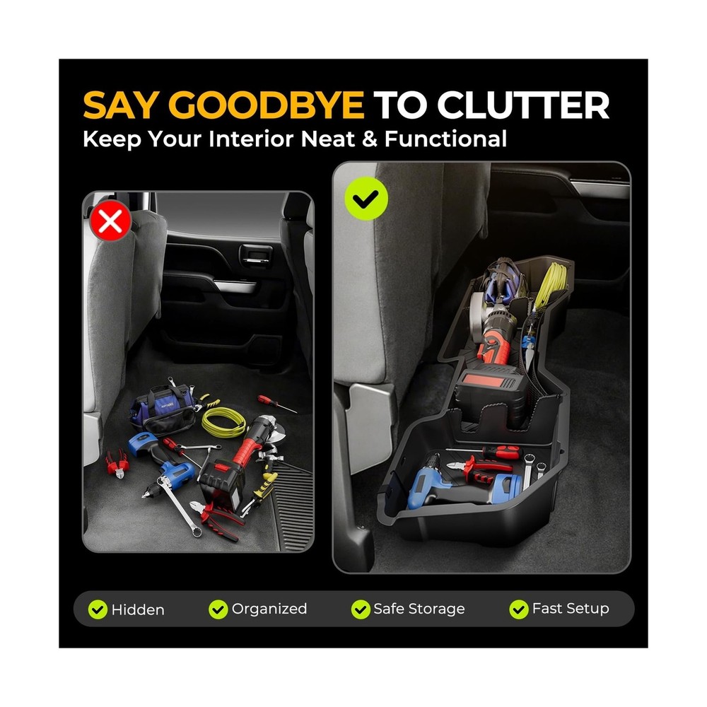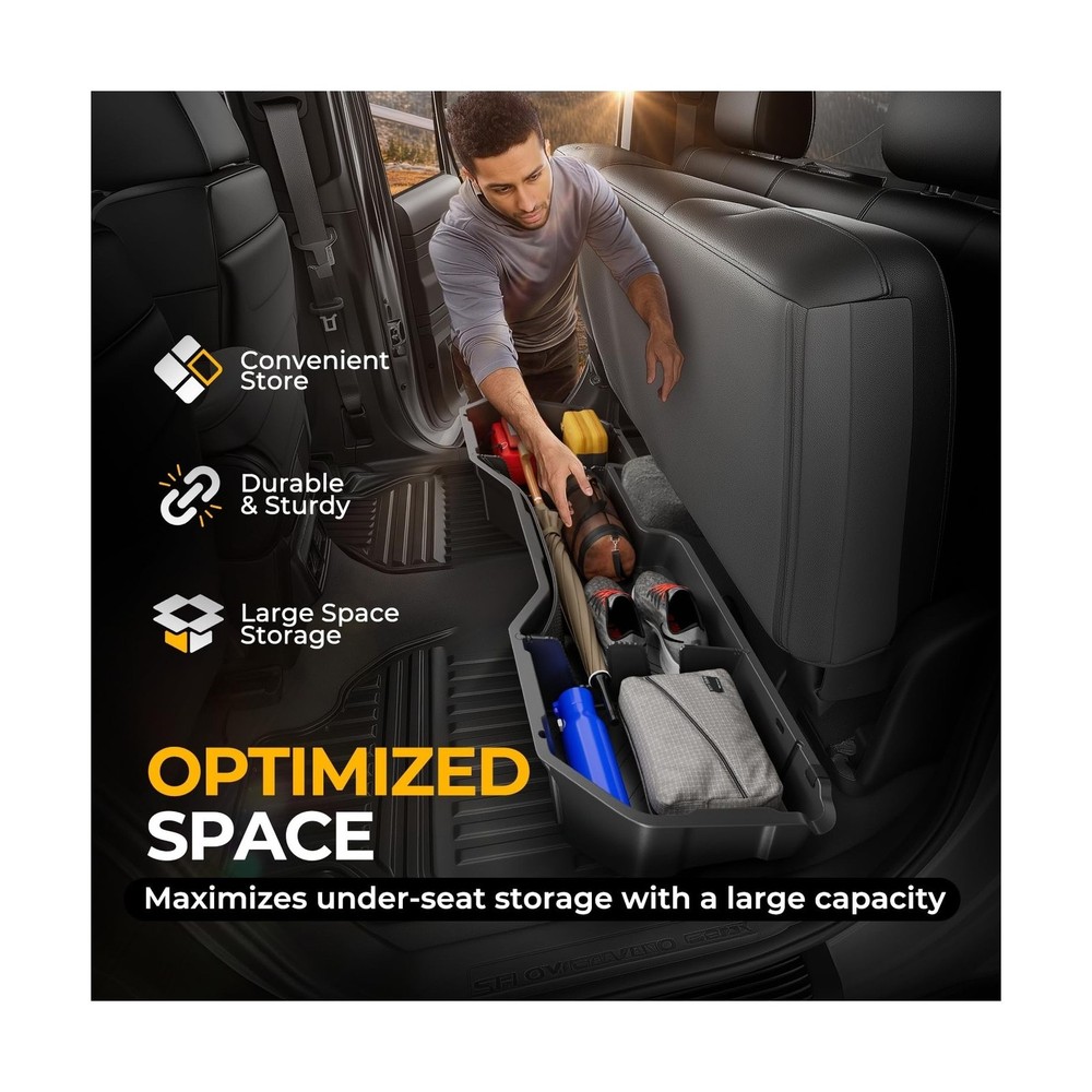 Rear Under Seat Tool Cargo Storage Box Organizer Tray Compatible with Chevy Silverado GMC Sierra 1500 2500HD 3500HD Crew Cab Pickup 2007-2019, Lightweight Design, Glossy Black Description Features: Vehicle Compatibility - This storage box is compatible with Chevrolet Silverado 1500 2007-2018, Chevrolet Silverado 2500HD 2007-2019, Chevrolet Silverado 3500HD 2007-2019, GMC Sierra 1500 2007-2018, GMC Sierra 2500HD 2007-2019, GMC Sierra 3500HD 2007-2019. NOTE: Fits crew cab pickup models, does NOT fit 2007 classic models. Excellent Confidentiality - This underseat truck storage organizer fits the rear seat seamlessly and provides a discreet space to store valuable items safely. It maintains full seat functionality and legroom while optimizing storage space. Additionally, it can hide garbage out of sight underneath the rear seat, keeping your truck tidy. The 1/8 inches thick walls add to the durability and protection of your belongings. Extraordinary Quality - Made from durable polypropylene (PP), this underseat truck storage box has a textured matte black finish that resists scratches, moisture, and fading. Its waterproof design allows for easy cleaning. The reinforced cross brace pattern on the bottom floor enhances rigidity, providing long - lasting protection and a sleek appearance even in tough conditions. The lightweight construction ensures strength and durability for a long - lasting performance. Maximized Space Utilization - The underseat truck storage organizer is a perfect solution to utilize the space under the back seat of the truck. It offers large storage capacity and versatile organization with removable dividers. The nylon net ensures small and round items are securely held in place. This storage box is great for storing tools, camping gear, hunting equipment, or daily essentials, enhancing your trucks Rear Seat Storage efficiency and keeping items secure during travel. Simple Installation - Fast and easy for the installation via included straps, without any drilling and modification. Product Details: Specific Uses For Product: Automobiles Material: Injection Molded Polypropylene Special Feature: Easy to Insall, Lightweight, Organizer Tray, Removable, Underseat Storage Color: Black Brand: Auto Dynasty Finish Type: Abs,Black Finish,Glossy Number of Items: 1 Manufacturer: Auto Dynasty Specific Uses For Product: Automobiles Material: Injection Molded Polypropylene Special Feature: Easy to Insall, Lightweight, Organizer Tray, Removable, Underseat Storage Color: Black Brand: Auto Dynasty Finish Type: Abs,Black Finish,Glossy Number of Items: 1 Manufacturer: Auto Dynasty Item Weight: 1 pounds Package Dimensions: 56 x 17 x 7 inches Exterior: Matte Bump Texture Manufacturer Part Number: ADSBOX002 Position: Inside Special Features: Easy to Insall, Lightweight, Organizer Tray, Removable, Underseat Storage Date First Available: October 15, 2019 Delivery We Do Not Ship Outside of the Continental US. Return Policy All items qualify for returns within 30 days of receipt. Buyer is responsible for return shipping on any item that is not damaged. Feedback We take our reputation seriously, we buy and sell online, so we understand the value of trust. If you are unsatisfied with your order, please contact us and we will work with you to resolve it to your satisfaction.