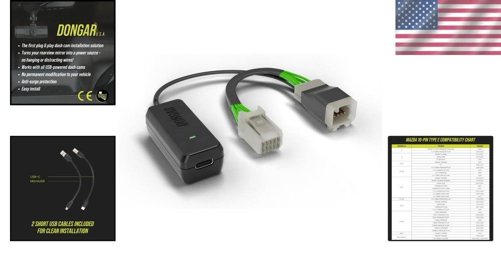 Rearview Mirror Dash Cam Adapter - Plug & Play Installation ‹ › ‹ › ‹ › ‹ › ‹ › ‹ › ‹ › ‹ › ‹ › Rearview Mirror Dash Cam Adapter Enjoy a seamless driving experience with our Rearview Mirror Dash Cam Adapter , designed for a fast, easy installation that requires no permanent modifications to your vehicle. Key Features: Plug & Play Installation: Experience an effortless setup as this adapter plugs directly into your rearview mirror wiring, ensuring a clean and discreet installation. Wide Compatibility: Compatible with a variety of USB-powered dash cams including popular options like Garmin Mini 2, Vantrue N2 Pro, and many others. Versatile Use: Not just for dash cams! This adapter also supports other USB-powered devices, such as radar detectors and GPS systems. Auto-Dimming Requirement: Designed for auto-dimming or powered rearview mirrors; it fits discreetly behind protective plastic cover. Ignition-Activated Power: Powers your devices only when your vehicle’s ignition is ON, preventing any battery drainage. Complete Install Kit: Includes one dash cam power adapter, two shorty USB cables (USB-C and Micro USB), and a plastic pry tool for a user-friendly installation. Why Choose Our Dash Cam Adapter? With our Rearview Mirror Dash Cam Adapter , you can enjoy an enhanced driving experience without the hassle. Forget about cluttered wires and complicated setups – with its plug & play design, you'll have your dash cam ready to go in no time. This adapter is the ultimate solution for anyone looking to stay safe on the road while maintaining a sleek and modern interior. Say goodbye to the worry of battery drainage and hello to a reliable, stylish, and functional accessory. Upgrade your driving experience today and ensure your dash cam is powered seamlessly. Elevate your automotive essentials with our Rearview Mirror Dash Cam Adapter! Shipping Free & Fast Shipping - We offer free shipping to most of the USA with a normal delivery time of 3-10 business days. However, due to various situations, additional delivery time (up to 3 weeks) may be required for some items. Alternative Carriers - We may use alternative carriers (e.g. USPS, FedEx, UPS, etc.) to ensure your package arrives safely and on time. Due to the use of multiple carriers, we are unable to provide a tracking number automatically. Handling Time - Orders are processed and shipped within 1-5 business days of receiving cleared payment. Shipping Restrictions - Shipping to Alaska, Hawaii, Puerto Rico, Guam, and other US territories may incur shipping charges or delivery restrictions. Please contact us before ordering, or your order can be refunded/cancelled. State Restrictions - There may be restrictions based on your state of purchase. For example, certain items may not be shipped to California due to state regulations. Contact for Tracking Updates - If you require tracking updates or have any concerns about the delivery of your order, please feel free to contact us, and we will be happy to assist you. Return 30-Day Hassle-Free Returns - We want you to be completely satisfied with your purchase. If you are not, you can return the item within 30 days of receiving it for a full refund or exchange. Easy Return Process - To start a return, simply contact us and we will provide you with a prepaid return shipping label and detailed instructions. Restocking Fee - There are no restocking fees for returns. However, the buyer is responsible for return shipping costs if the return is not due to a seller's error. Refund Processing Time - Refunds will be processed within 5 business days of receiving the returned item in its condition. Payment We accept all major credit cards, PayPal, and Apple Pay for your convenience. Your payment information is secure and encrypted to ensure a safe and seamless transaction. Please complete your payment within 3 days of purchase to avoid any delays in shipping. Feedback Your feedback is extremely important to us. We strive to provide the best products and customer service possible. If you are satisfied with your purchase, please take a moment to leave us a positive review. If you have any concerns or issues with your order, please contact us before leaving negative feedback. We are committed to resolving any problems and ensuring your satisfaction. Contact Us If you have any questions or concerns, please feel free to out to our customer support team. You can contact us through the eBay messaging system. We are available Monday to Friday, 9:00 am to 5:00 pm EST, and we will do our best to respond to your inquiry within 24 hours. Buy it now and enjoy a pleasant shopping experience! MPN: Dashcam_Power_Adapter_for_Mazda Type: Dash Camera