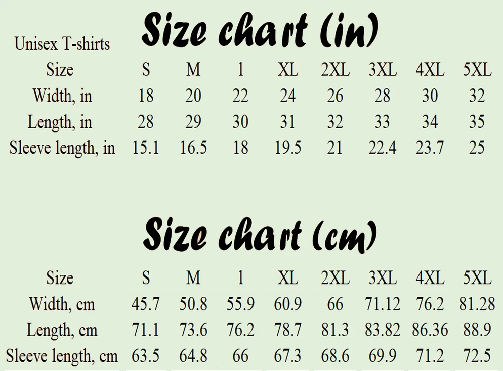WELCOME TO OUR STORE If you are looking for a shirt for yourself or a gift for a loved one, our store is the perfect place to help you do it. We have a wide variety of t-shirt designs for you to choose from. We have attached the size chart so you can choose the right size. DESCRIPTION: Brand: Gildan Decoration type: Digital Print Material: 100% Cotton Available sizes: S, M, L, XL, 2XL, 3XL, 4XL (we also have 5XL if you request) SERVICE: Due to lighting effect and computer color, the actual color may be slightly different from the picture. Hope for your understanding on this. But customers who have used our products are very satisfied with the products they receive from us. We do not accept returns of goods for the following reasons: Customers choose the wrong size. we only accept return for damage or bad printing result FEEDBACK: The satisfaction of our customers is the first place for us. If you are happy with your purchase, PLEASE take a moment to leave Positive feedback for us. We really appreciate that. If you are not happy with the purchase, PLEASE contact us to resolve the problem. We are always here to give you the best solutions. THANK YOU SO MUCH, HAVE A GOOD DAY!