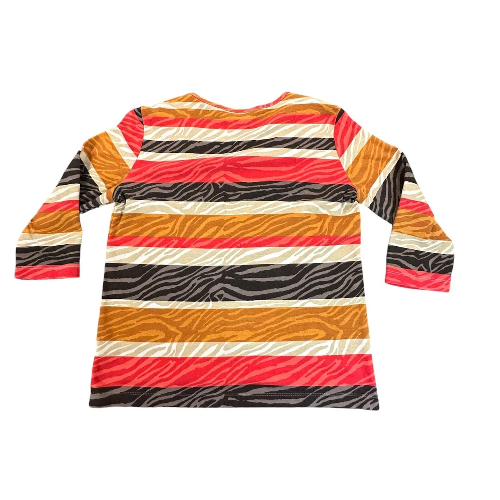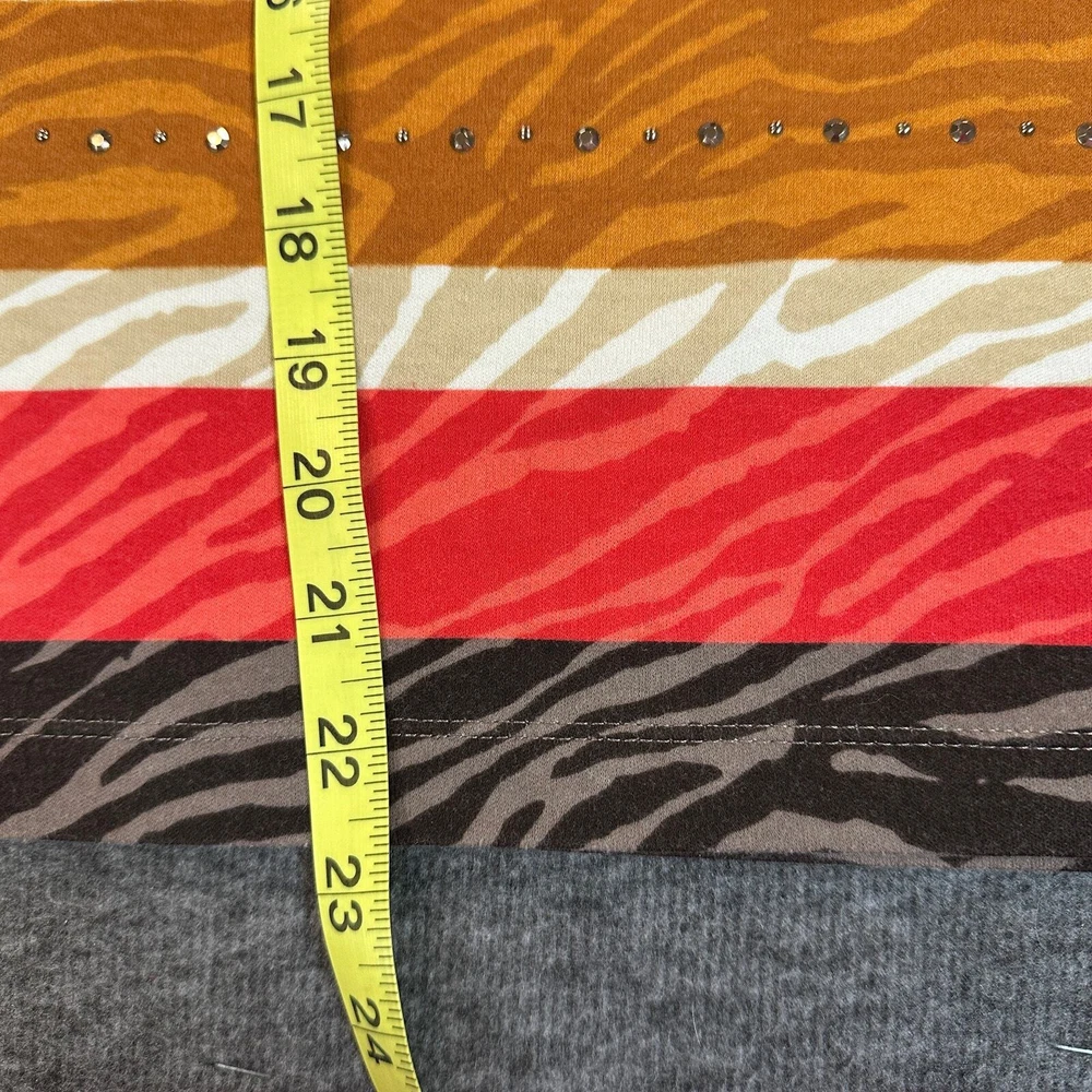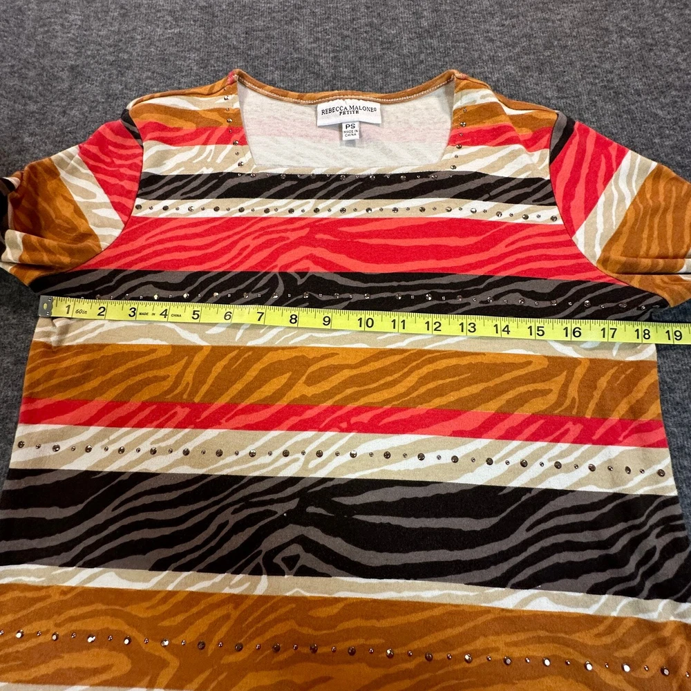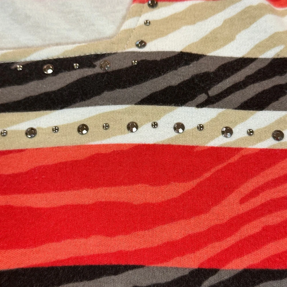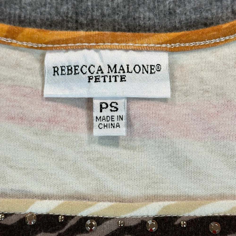 Rebecca Malone Shirt Womens Petite Small Brown Red Striped Zebra Print Studded