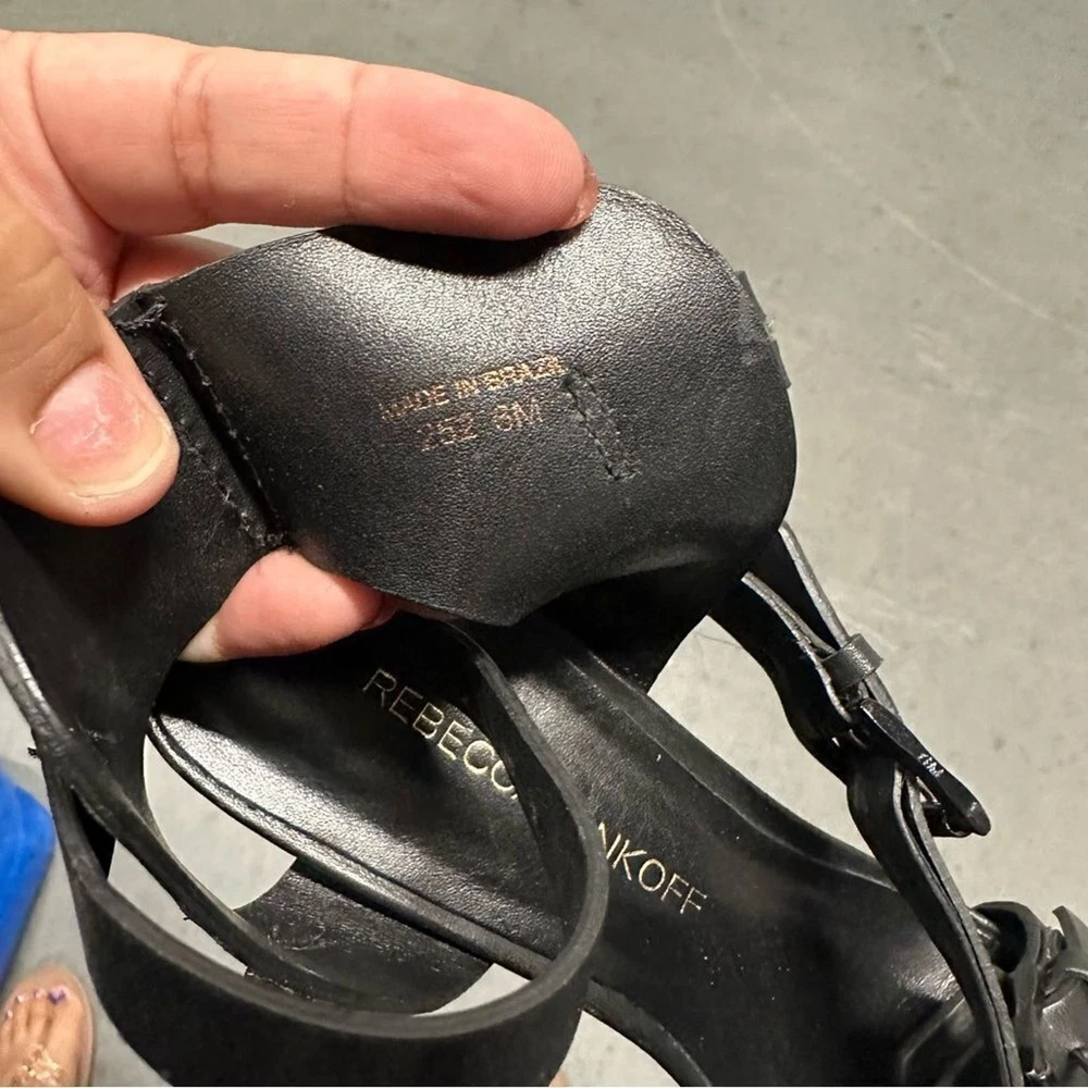 Rebecca Minkoff Black Strappy Sandal Heels sz 6 Beautiful leather with great craftsmanship. Check out my other items to bundle and save! Thank you for stopping by. Please let me know if you have any questions.