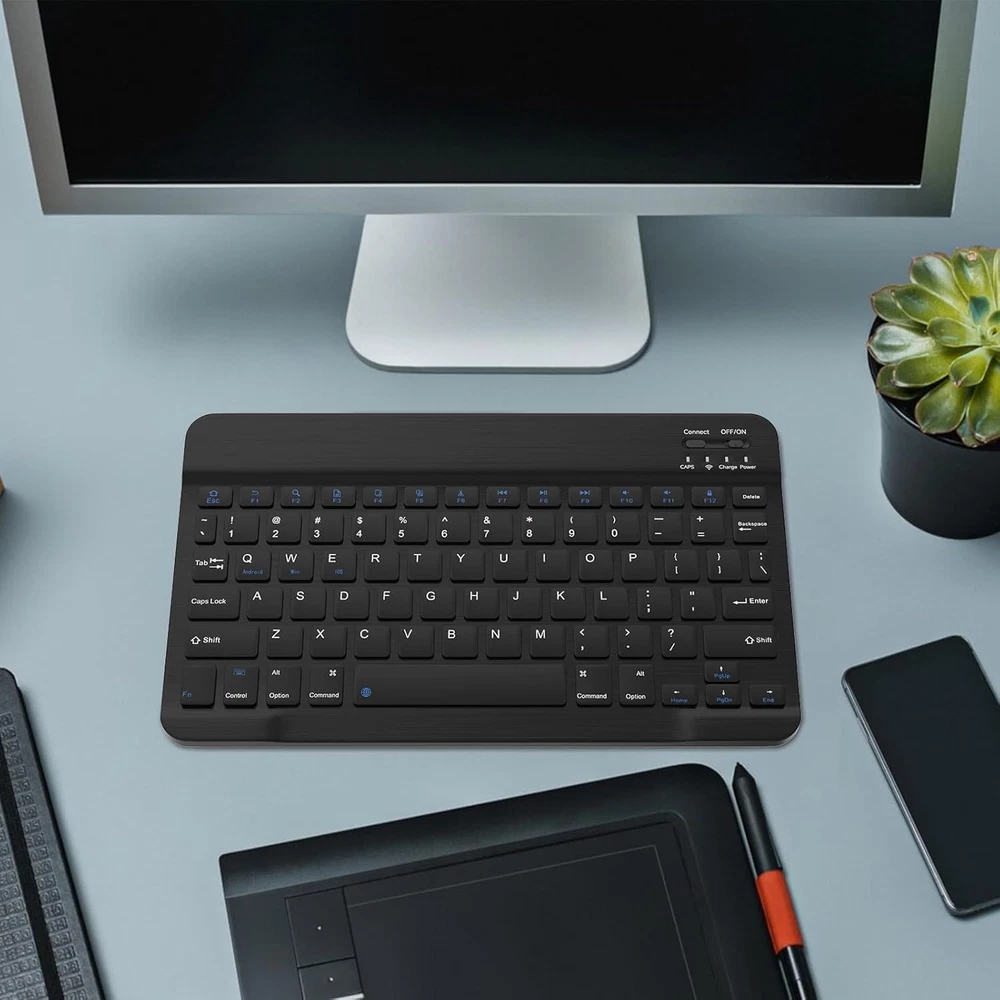🔋 Rechargeable Bluetooth keyboard and mouse combo for easy, wireless use. 💻 Works perfectly with laptops, tablets, phones, and desktop computers. 🪶 Ultra-slim, lightweight design makes it great for travel or office use. 🖱️ Silent wireless mouse provides smooth and quiet operation. 📱 Universal compatibility with Windows, Android, and iOS devices. 🧠 Quick Bluetooth pairing—connect instantly and start typing in seconds. 💡 Built-in rechargeable battery saves you money on disposable batteries. 🌙 Smart sleep mode helps extend battery life during idle times. 🧩 Full QWERTY keyboard layout with shortcut and media control keys. 🎒 Compact and portable—fits easily in a bag, perfect for on-the-go use. 🎧 10-meter wireless range gives you freedom to work without clutter. 🧼 Easy to clean and maintain, keeping your workspace neat and modern. 💼 Great for home, office, school, or remote work setups. 🔧 Plug-and-play operation—no software installation required. ✅ Stylish, practical, and efficient—perfect for productivity anywhere!