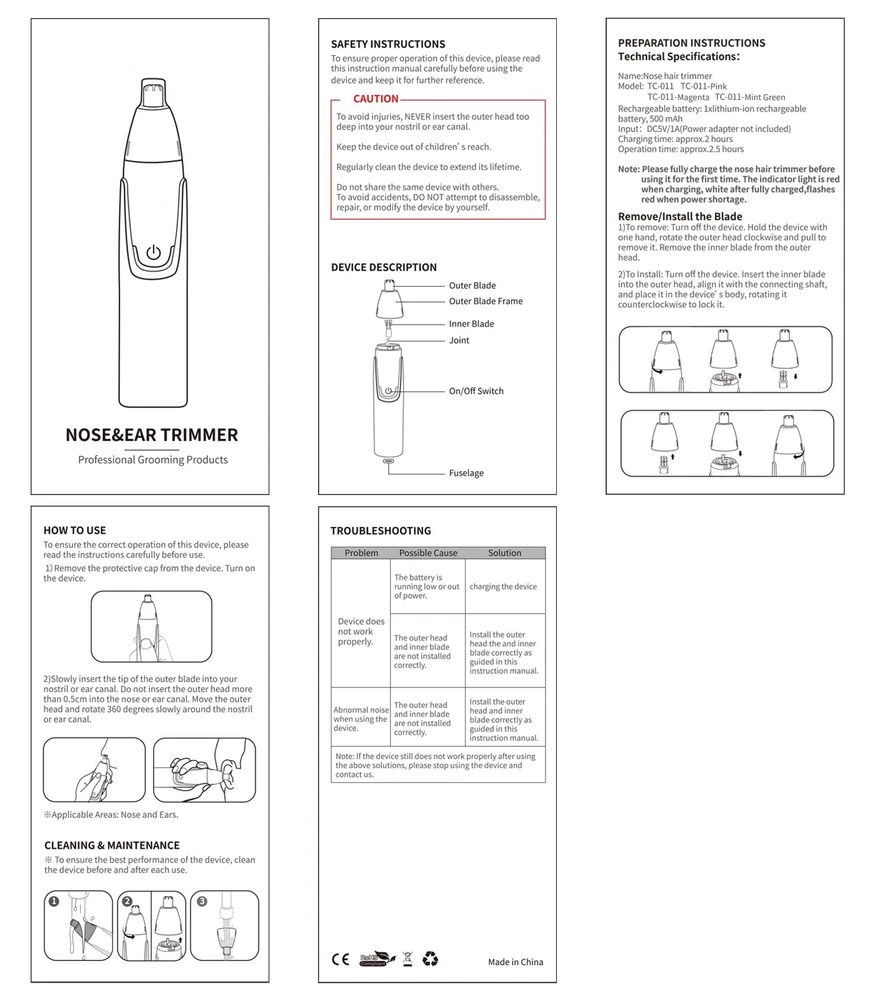 【Rechargeable Battery & Long Standby Time】 Charge the nose hair trimmer using the included USB C charging cable. Charge on the go, connecting the cable to a USB port, power bank, computer, or USB car charger. One charge powers the nose hair trimmer for up to 6 months. The noise level during operation is about 50dB to reduce the disturbance. 【Multi-Purpose Trimmer for Multiple Scenes】 Utilize high-strength stainless steel blades for accurate trimming. Remove the nose, ear, eyebrow, beard, and face excess hair comfortably and efficiently. Sensitive one-touch control and portable design allow you to trim unwanted hair during travels, showing your confidence in any situation. 【High Work Efficiency, High Level of Safety】 Powered by a 9000RPM high-speed motor, the dual-edge spinning blades quickly and precisely capture the long nose hairs, trim them to a proper length, and finish the trimming work for many strands once to save time. Lower the power level stably when the battery gets low to avoid painful pulling. 【Detachable Structure, Washable Trimmer】 Directly detach the trimmer head from the main body to wash and clean, making it effortless to maintain the performance. It’s necessary to detach and clean the trimmer head after each use. Come with a protective cover to shield the blades from dust. Ergonomically designed for a better user experience. 【Lifetime for Worry-Free】 We stand behind our products and their quality! If you are not entirely satisfied for any reason, CONTACT US directly, you can return the product for a replacement or refund with no question asked. JUST BUY WITH 100% CONFIDENCE.