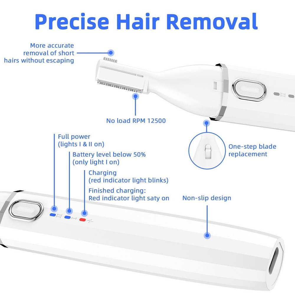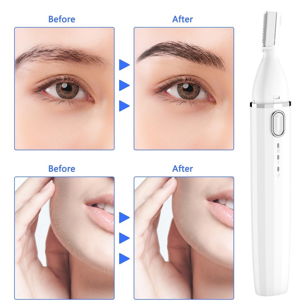 Facial Hair Remover and Eyebrow Trimmer, Rechargeable Hair Removal Women's Electric Shaver Razor for Peach Fuzz Chin Cheek Upper Lip Multifunctional Eyebrow trimmer- This electric eyebrow razor is suited to eyebrows, armpit, lips,ears, peach fuzz, mustache, legs. This facial hair trimmer comes with a precision grooming comb attachment. So you can expertly trim and shape your eyebrows Safety for All Skin Type -- The long-lasting blade is hypoallergenic, superbly gentle on your skin. Eyebrow trimmer is perfect shave close to your skin without causing any pulls, nicks, redness or irritation.Our painless eyebrow razor works for men and women. Rechargeble with LED Light - Updated hair trimmer with LED light makes it clearer to see tiny hairs. Even in the dark environment, electric eyebrow trimmer can accurately trim excess hair. And the convenient USB charging can be use for long time,no more buying AA batteries. Easy to Use and Clean- The exquisite eyebrow trimmer all operations with one button ,give back your confindent looking in minutes. The electric eyebrow trimmer has 3 indicator lights for remind you the charging time.Remover the blade to clean . Portable and Perfect Gift - Stylish and compact with a design that shows a lady's modernity and style, the eyebrow trimmer is the perfect gift for your friends and parents at Christmas, featuring a small portable size. You can easily carry the eyebrow trimmer in your beauty bag, purse or wallet.