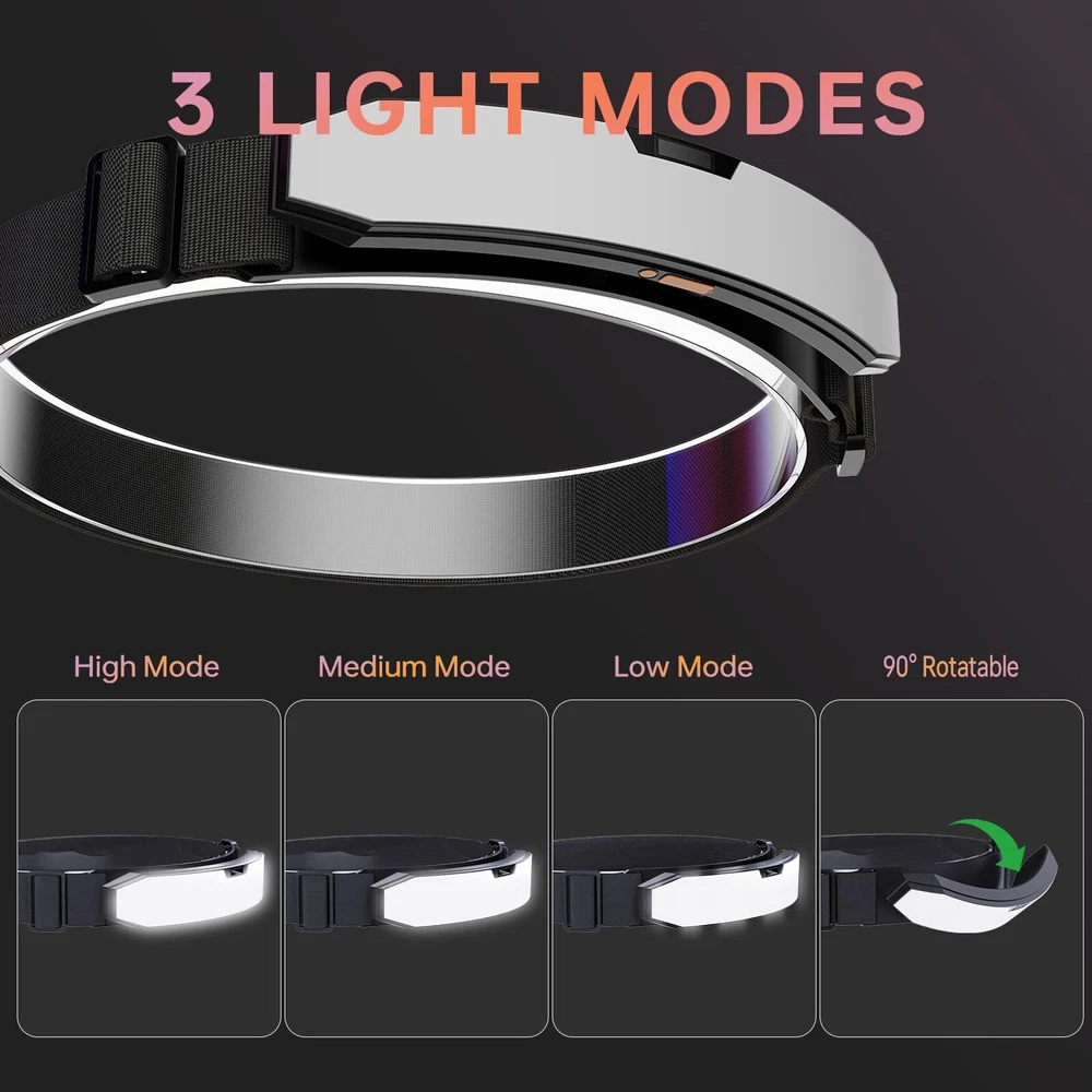"BORN FOR THE BEST" has always been 's creative philosophy. Over the years we have been focusing on quality, innovation, and user experience, focus makes our products unique. We have full confidence in our products, and we believe you will want to choose headlamps. For the new headlamp, we have made the following changes. 1. Reduce the weight of the headlamp and increase the comfort when wearing; 2. Increase the motion sensor function; 3. Straight line modeling; If you need to use it in bright light mode for a long time, recommends that you purchase 2 for replacement use. STUNNING BRIGHT & ULTRALIGHT HEAD LAMPS LED RECHARGEABLE: With brightest LEDs, COB headlamp can emit up to 1200 lumens and reach over 300 meters. Compared to a traditional head flashlight, it has a better view, meet most of the dark environment needs. This k0209 headlamp weighs only 113g/4oz, It is so lightweight and comfortable that you won't even feel it, even if you wear it all day. MOTION DETECTION TECHNOLOGY & HANDS-FREE WIDE-BEAM LED HEADLAMP: LED Headlamp Camping Accessories is equipped with the latest intelligent sensors. Even if you're wearing gloves, as long as the distance from the device is within 10cm, you can quickly switch the ON/OFF by waving your hand in motion mode. In any mode, press the power switch 2 seconds into the Motion Sensor mode. POWERFUL HEADBAND LIGHT & 3 LIGHT MODES: Built-in 2000mAh rechargeable battery, Fast charging in 3 hours, and will give you up to 2 hours in high-light mode and 12 hours in low-light mode. Great gear for any situation, such as hiking camping running fishing hunting mechanic working. ORIGINALITY 90° ADJUSTABLE FOREHEAD LIGHT: Unlike other ordinary strip COB headlamps, allows to rotate the strip downward up to 90°, you can easily change the angle of the light to the direction you need, expanding the visible range. PROFESSIONAL IPX4 WATERPROOF HEAD LAMP: Fully enclosed design to prevent water mist and rain from entering, enough to deal with all inclement weather. The elastic headband will fit perfectly on your head, breathable and non-slip. RISK-FREE PURCHASE: Don’t worry about missing Amazon’s 30-day return window, will provide 180-day quality assurance and 60-day money back. BUY WITH CONFIDENCE, Add LED headlamp flashlight to your cart now!!!
