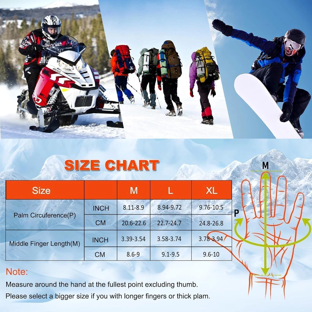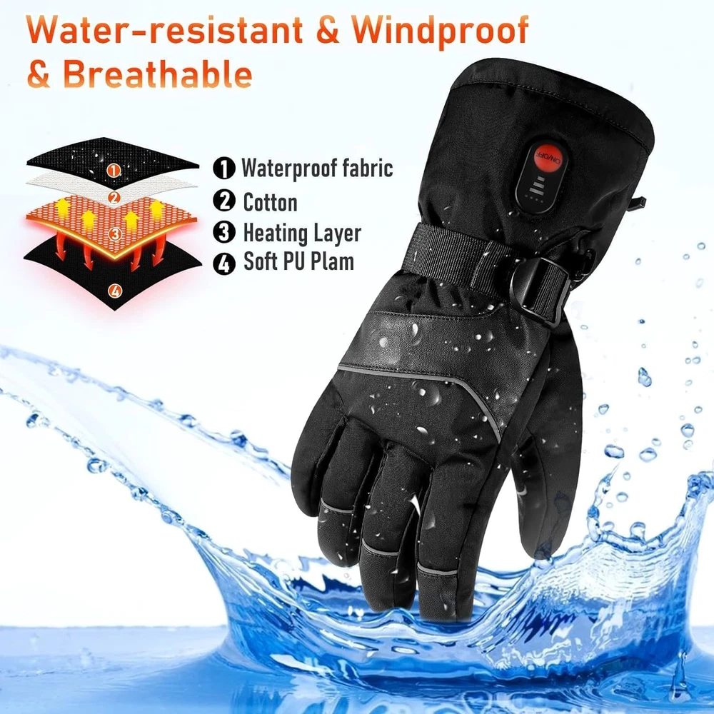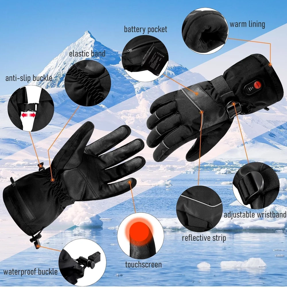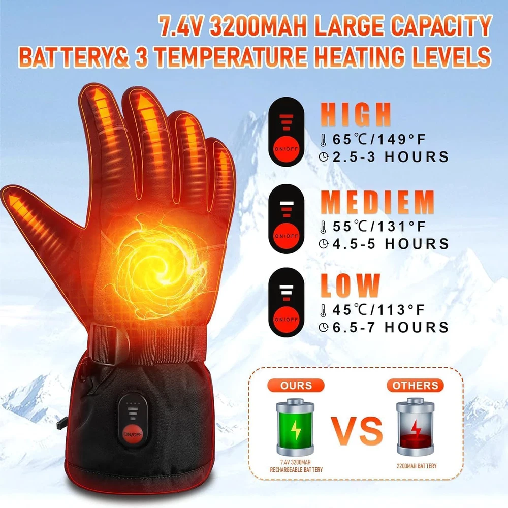 Fast Shipping Great Customer Support Satisfaction Guaranteed DESCRIPTION Shipping Shipping Shipping All domestic packages are shipped for Free (Unless other shipping method was selected during the checkout) Most items ship and arrive much sooner than the estimate delivery date. Usually within 2-3 days from payment. However, we have longer estimates to compensate for the occasional delay or supply chain breakdown. We do not accept P.O. BOXES - PLEASE PROVIDE A PHYSICAL ADDRESS Return Return Return In the event that you would like to return your purchase, we allow returns that are processed within the defined return date (the return date is to be found in the return policy/shipping and handling section) Please contact us for a return authorization and the return shipping address. Payment Payment Payment PayPal is our preferred method of payments it's the quickest, easiest and most secure way to pay for your goods or services online. PayPal offers buyer and seller protection should there be a problem. If you do not have a PayPal account, to get started and buy your first item with us is very easy. Simply click on the 'Buy It Now' button and follow the eBay checkout steps. Select PayPal as the payment method you then will be given the chance to enter your card details in to PayPal's secure checkout in order to pay for your order. Once the payment has been made, you will then be given the opportunity to make your own PayPal account to make paying for your items in the future very easy. Should there be a problem with payment please do let us know. Feedback Feedback Feedback Customer satisfaction is very important to us. If you have any problem with your order,please contact us and we will do our best to make you satisfied, please do not leave a negative feedback before we resolve your problem. We guarantee that your issue will be solved quickly. As long as you are happy with your purchase of , please leave us a positive feedback. Your feedback is very important to us it affects our search placement on eBay. We will leave a positive feedback for you in return automatically once we receive your feedback. Contact Us Contact Us Contact Us If you have any queries, please contact us via ebay. We usually respond within 24 hours on weekdays. Thank you for visiting our ebay store! 【FULLY& PWERFUL HEATING】Each finger and the entire back of the hand inside the heated gloves for men are covered with an upgraded far-infrared heating wire, which can heat up quickly within 30 seconds,Healthy battery heating gloves are suitable for those who like skiing, snowboarding, sledding, motorcycles, rock climbing, hiking and cycling. 【POWERFUL BATTERIES】The men's electric heated gloves include pair of 3200mAh * 2 battery capacity, 31% larger capacity and 30% longer heating time than other heated gloves on the market at 2200 mAh. Heating Up to 3.5-6 Hours and full charge around 3-4 hours . 【SMART TEMPERATURE CONTROL】The battery men heated gloves have one button technology with 3 adjustable temperature settings: the high setting (149 ℉), the medium setting (131 ℉), and the low setting (113 ℉ ), enable customized balance between heat needed and working hours desired. Note: Please fully charged it before the first use. 【TOUCHSCREEN HEATING GLOVES】The heat thermal gloves are designed with durable PU palm which comes with sensitive touch screen materials, allowing you to freely use tablets, phones, and car screens without removing your electric gloves for men; The thermal winter gloves are very suitable for skiing, hunting, ice fishing, sledding, motorcycles, shoveling, outdoor work and anyone suffering from Raynaud's disease, poor circulation, arthritis and Joint stiffness of joints. 【WINDPROOF & BREATHABLE】winter Heated ski gloves for men women are made of high-quality insulated polyester,windproof, durable breathable lightweight material.The palm section is made of soft and durable PU anti-slipping texture, and the lining uses cotton & thermal fleece insulation to absorb moisture and keep your hands dry and warm. The wrist and arm sections can be adjusted for elasticity to prevent temperature loss, provides better protection in extreme cold weather. Rechargeable Heated Gloves for Men & Women - 7.4V Touchscreen & 3 Heat Settings Click here to see description Fast Shipping Great Customer Support Satisfaction Guaranteed DESCRIPTION Shipping All domestic packages are shipped for Free (Unless other shipping method was selected during the checkout) We ship within two business days of payment, usually sooner Standard FREE shipping takes between 3-5 business days Expedited shipping takes between 2-3 business days Overnight shipping takes between 1-2 business days We do not accept P.O. BOXES - PLEASE PROVIDE A PHYSICAL ADDRESS We Ship Globally using ebay's GSP, the item is sent to a logistic center in KY and shipped from there to the rest of the world. International customers are responsible for all duties and taxes Contact your local authority for questions related to the amount of duties or taxes you will be responsible for Return In the event that you would like to return your purchase, we allow returns that are processed within the defined return date (the return date is to be found in the return policy/shipping and handling section) Please contact us for a return authorization and the return shipping address. Please contact us for a Return Merchandise Authorization (RMA) number. We advise you to use a reputable carrier service when returning your goods. Please pack all returns appropriately. We ship globally Via eBay's global shipping program (GSP). Thus we don't cover returns for items shipped globally. Buyers returning such items will be refunded ONLY for the item's cost and not for the shipping. please check the Voltage information and make sure it matches the one in your country. In case it's not stated in the description, do ask us. Payment PayPal is our preferred method of payments it's the qu