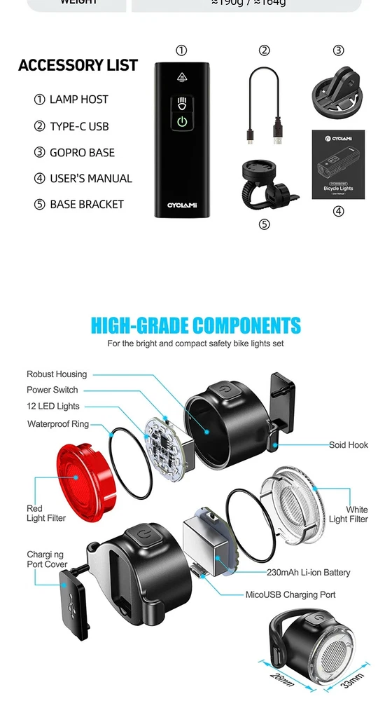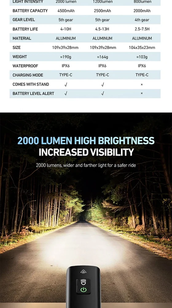 Rechargeable LED Bicycle Light Set for Road & MTB Front Back Safety Headlight