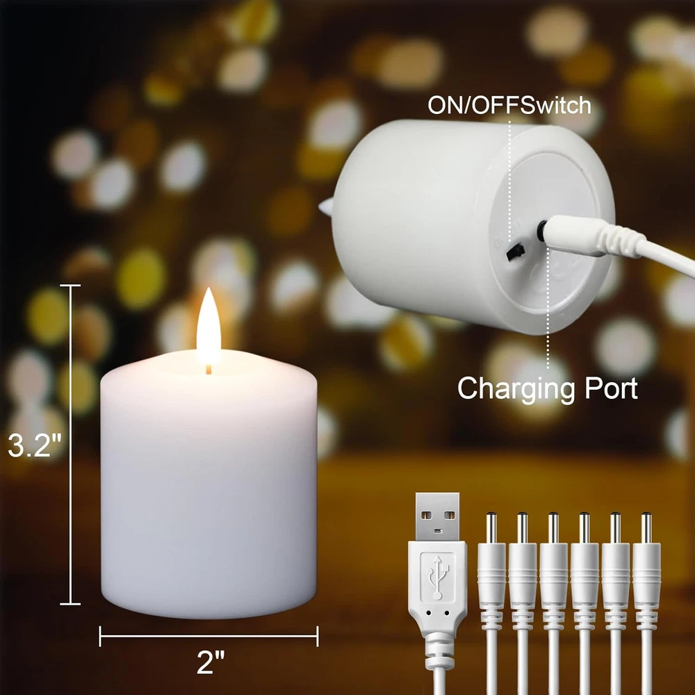 Rechargeable Tea Lights Battery Operated, Rechargeable Candles with Remote Timer, LED Tea Lights with Charging Cable, 6 Pack Real Wax LED Votive Candles for Home Decor (White, 2 X 3.2 Inch) RECHARGEABLE TEA LIGHTS: A set of 6 white tealight candles with a charging cable, lets you away from the trouble of repeatedly replacing the battery, just use the charging cable to power the candles, patiently wait 2-3 hours REALISTIC 3D FLAMELESS: These flameless candles have a 3D flame, the warm LED light is pretty and bright enough.they have a more natural flickering light. look and behave more like real candles, really add to the ambiance of the holiday REMOTE CONTROL VOTIVE CANDLES: For Flameless candles with remote control, slide the ON/OFF switch at the bottom of the candles to ON and then use the remote control to control them, including turn on/off, 2/4/6/8H timer mode, brightness adjustment, flicker or steady, saving you the trouble of picking up these candles one by one to close them manually TIMER BATTERY OPERATED CANDLES: When you often forget to turn off the candles and cause the battery out of power or don't want to get up to turn them off when you sleep, you can choose the 2/4/6/8H timer tealight candles are very convenient, you just need to turn on the timer, it will automatically turn off after 2/4/6/8 hours, automatically turn on the next day HOME DECOR TABLE CENTERPIECES: Home decorations and holiday decorations. Place in glass cups or wine glasses with pumpkins as decorations for your festival party. Designed for muti-scene: Christmas decoration, Table Centerpiece Decor, Wedding, Anniversary, Funeral, Halloween, Christmas, Parties, wall Sconces, tea lights/votive holders GenSwin Rechargeable Tea Lights with Remote Timer, Battery Operated Tealights Candles, Real Wax LED Tea Lights with Charging cable, 6 Pack LED Votive Flameless Candles for Home Seasonal Decor Decor (White, 2 x 3.2 Inch) Item model number FXT6-YK-CD Part Number 6 Style Art Deco Lamp Type Table Lamp Shade Color White Color 6-White Product Dimensions 2"D x 2"W x 3.2"H Material wax Country of Origin China Batteries Required? No Item Weight 1.12 pounds Batteries Included? No Number of Items 6 Shade Material wax Special Features Remote Included Components On-Off Switch Special Feature Remote Switch Type Slide 2.0 "h x 2.0 "h x 3.2 "h. Weight: 1.12 lb Shipping from the USA All of our products are shipped from the USA, ensuring quick delivery to your destination. Payment We offer the following payment methods: PayPal, credit card, bank transfer, and eBay's secure payment system. Free Shipping & Free Returns Shipping within the USA is FREE. Additionally, any return is absolutely free for you. Risk-Free Purchase You have the option to return an item within 30 days without any justification. We cover the return shipping costs! Fast Shipping We ship immediately upon receipt of payment. Generally, the package is delivered within 2-3 days in the USA. If it takes longer, we will contact you. Quality and Costs Made in Europe, USA, China No customs fees or additional charges Total satisfaction guarantee Invoice with declared VAT available upon request in .pdf format Feedback Your feedback is very important to us. After you pay for your purchase, you will automatically receive positive feedback from us.
