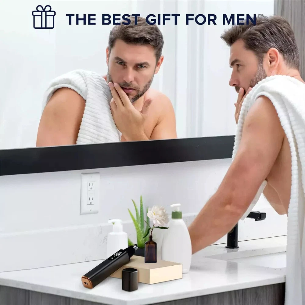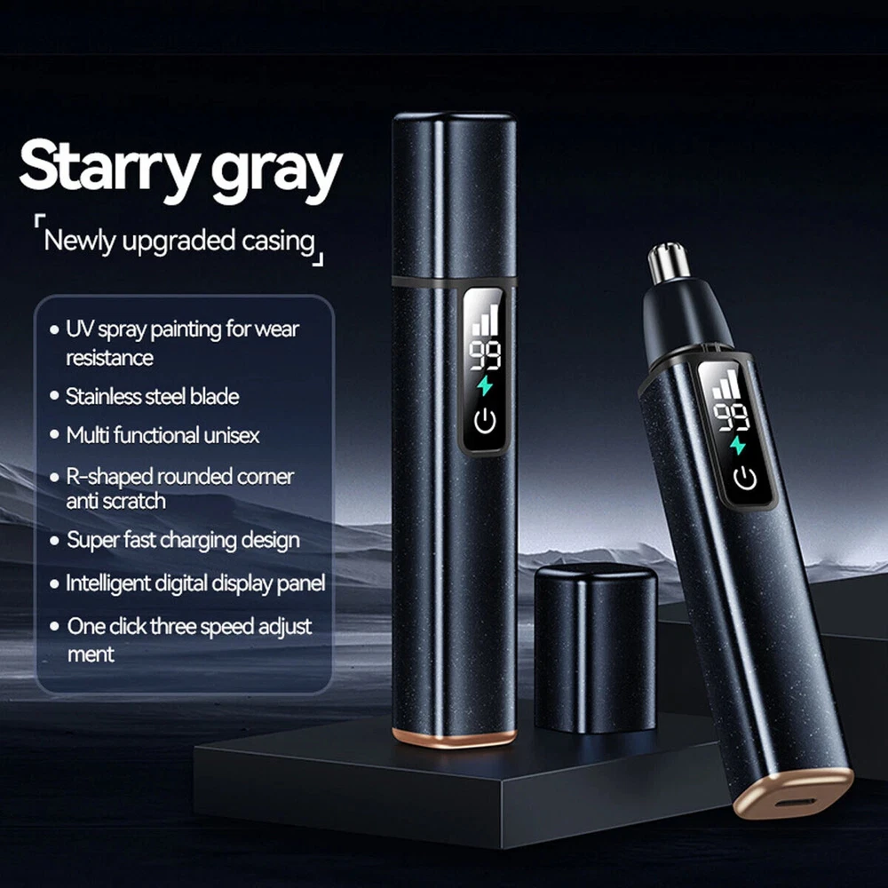 Product Details: Color: Black Item Dimension: 5.1*0.9*0.9 inch 3-speed adjustable Features: 3 Trimming Modes: The nose trimmer offers 3 speed modes of operation: low, medium and high, with a maximum speed of up to 10,000 RPM. Use different modes to handle varying hair textures, ensuring a gentle, comfortable experience while eliminating hair-related anxieties. Waterproof for Easy Maintenance: This men's nose clipper is rated IPX7 on the waterproof scale, making it resilient to domestic water. You can rinse directly under the tap after use, ensuring better storage and enhanced of the device. LCD Display: This 2024 upgraded version of men's nose trimmer comes with an LCD display for easy one-touch control, accurately showing the battery level before you depart for a trip. Now, bid farewell to the woes of the battery running out mid-trim, ensuring for use. Multi purpose: Nose and ear hair trimmer is not just a grooming device but a complete solution for men. The nose hair trimmer with a double-edged blade design, fits skin great. Effectively and comfortably removes unwanted hair from nose, ears and face. Allow you to show your most confident side anytime and anywhere. Fast USB Charging: The professional nose and ear hair trimmer comes with a USB type-c charging cable, charging for one hour supports 300 minutes working time. Make charging power banks, laptops and mobile phone chargers convenient and practical. Nice Gift: Nose hair trimmer is good news for men who have high demands on themselves, easy to carry. It is the best gift for men. Package Include: 1 x Ear and Nose Hair Trimmer 1 x Manual 1 x USB type-c cable On May 26, 2025 at 01:16:01 PDT, seller added the following information: