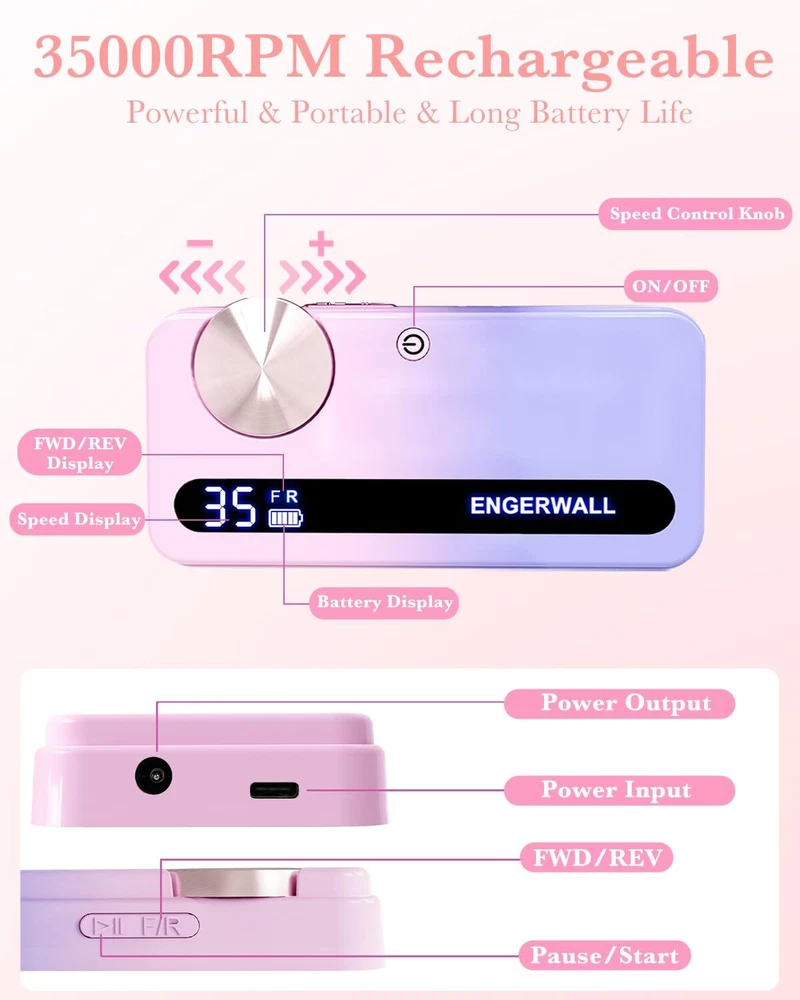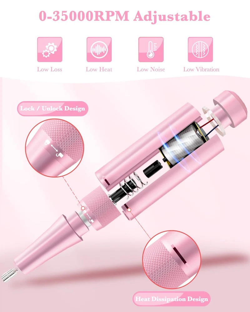 Rechargeable Nail Drill 35,000 RPM for Acrylic, Gel Nails, Polishing & Removal