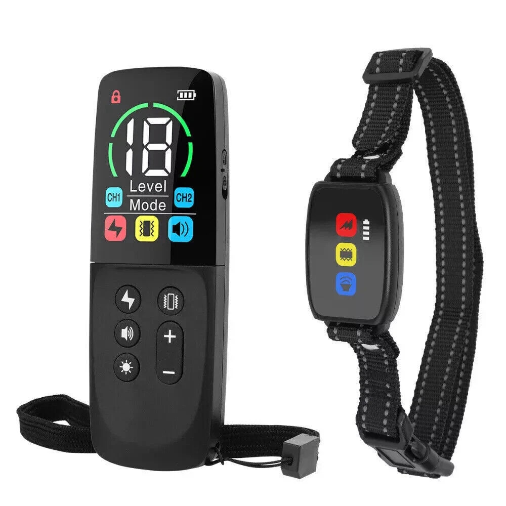 Description Dog training collar with descriptive symbols - improves visual training feedback: Large LCD color screen with clear and vivid display. The same training icons are displayed on both the remote control and the dog training collar. When the remote control sends a training command, the corresponding training icons on the collar will light up, which displays the working status of the electric shock collar more intuitively and improves visual feedback during training. 3 training modes - increasing training effectiveness: YOUKUKE dog training collar with remote control offers 3 training modes: beep (8 different tones), vibration (1-8 levels) and static shock (1-18 levels). The adjustable training levels allow training to be tailored to the differences of each dog. Adjust the level according to the dog's response and behavior to meet their needs and abilities. How to effectively change your dog's bad habits by using dog shock collars. Fast response time - improving the training experience: YOUKUKE dog shock collar with remote uses a smart chip to shorten the response time. When your dog wants to show a positive behavior or make a correction, click the button and the signal will be quickly transmitted to the collar, ensuring that your commands are transmitted accurately and immediately. This allows your furry companion to understand without confusion. It supports 2 channels and can control 2 collar receivers at the same time (only 1 collar receiver is for sale, if you need an additional collar receiver, please contact us to purchase it separately). Fast response time - improving the training experience: YOUKUKE dog shock collar with remote uses a smart chip to shorten the response time. When your dog wants to show a positive behavior or make a correction, click the button and the signal will be quickly transmitted to the collar, ensuring that your commands are transmitted accurately and immediately. This allows your furry companion to understand without confusion. It supports 2 channels and can control 2 collar receivers at the same time (only 1 collar receiver is for sale, if you need an additional collar receiver, please contact us to purchase it separately). Small design - improving wearing comfort: Our dog shock collar is smaller design. Compact collar reduces the burden on the dog's neck, ensuring long-term wearing comfort. The waterproof receiver allows you to use the dog training collar with remote for outdoor training. The band is soft and odorless, dog shocker for large, medium and small dogs, all breeds with neck girth of 15-68 cm and weight of 3.6-54 kg. Please measure the neck girth and adjust the strap before use. Long battery life - extended operating time: The dog training collar extends the battery life. Comes with a charging cable, please use it to charge. Train and enjoy, get the well-behaved puppy you've always dreamed of with YOUKUKE rechargeable dog shock trainer collar. Technical data: Handheld transmitter material: ABS Receiver material: ABS Collar material: nylon Color: Black Functions: Static shock, vibration, beep, flashing dog search icons Remote transmitter battery: Built-in 300 mAh (120 days standby time) Collar receiver battery: Built-in 300 mAh (45 days standby time) Charging port: Type-C USB Charging time: about 2 hours with DC 5V 1A Remote control range: up to 800 m (open area) Frequency: 433 MHz Suitable dog: Large, medium and small dogs (3.6-54 kg) Waterproof: IP67 (E-collar) Handheld remote control size: about 130 x 45 x 20 mm Collar receiver size: about 56 x 40 x 18 mm Certification: CE, FCC, ROHS, MSDS (documentation available) Scope of delivery: 1 x Remote transmitter 1 x Collar receiver 1 x Nylon collar 1 x Lanyard for remote transmitter 4 x Conductive silicone cover (1 pair long + 1 pair short) 1 x USB charging cable (Y-splitter, 1 to 2) 1 x Test lights 1 x User manual (English)