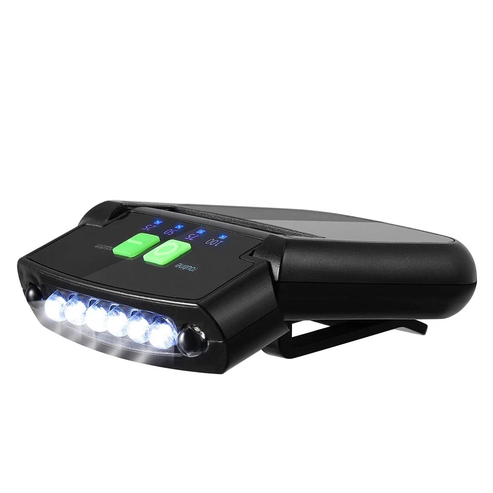 Product Description Features: 6 LED hat clip light: LED hat clip light with smart infrared sensor that captures your gestures well, enabling you to wake up and turn off the light by hand movements; the distance of the sensor is 9.8 inches/25 cm; there are 6 LEDs installed in each LED hat light, bright enough for you to use indoors or outdoors; and you can choose different 2 lighting modes: strong light and low light Suitable for all scenes Power display USB rechargeable: The hat clip light is designed with an LED screen that displays 25% 50% 75% 100% power, so you always know the battery level; these hat flashlight clips are powered by built-in rechargeable batteries; they contain USB charging ports, so you can charge them with various charging modes, including adapters, etc. We also have a USB cable for each hat light Easy to use: LED hat clip lights are easy to use, you can clip them on your hat, pocket, collar, etc. They feature a strong grip and are not easy to fall; they can be rotated 180 degrees to give you a clearer view; hands-free design, they can assist you well in dark conditions, etc. Widely applicable to use: hat clip light open low-grade not harsh, can be applied to close work, such as reading or long-distance viewing; also suitable for, high-grade, outdoor activities, including walking the dog, fishing, night running, reading, camping, hiking, jogging, etc Specifications: Product name: 6LED hat clip light Material: ABS Product color: black red blue LED number: 6LED Light color: white Function: gesture sensor / multi-angle adjustment Sensing distance: 25CM/9.8inch Lumen: 600LM Power display: 25% 50% 75% 100% Battery capacity: 1000mah Stage: 2 stages (high/low) Charging time: 4H Use time: 6-8H Product size: 62x50x21mm/2.44x1.96x0.82inch Package: 1x hat clip light 1x USB cable powered by