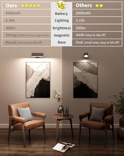 Return Policy Fast Delivery Trusted seller Rechargeable Wall Sconces Battery Operated Set of 2, Wall Mounted Bedside Lamps, Removable 360° Rotate Magnetic Black Wall Lights for Bedroom,Picture,Living Room,Vanity(2 Pack Black) Product Description Stepless Dimming & Memory: This wireless wall sconce is controlled by a touch switch, making it easy to turn on or off with a simple . By long-pressing the switch, you can achieve stepless dimming from 10% to 100%. The LED wall sconce also includes a memory function, which means it will remember the last brightness setting you used when turned on again. 360° Rotatable & Removable: The stick-on wall lights feature a wireless portable design, with a magnetic swivel light head that can rotate 360°. Strong magnets securely hold the wall mounted lamp at any desired angle. The detachable and portable design enables you to easily remove or reattach this wall mounted lamp in a matter of seconds. As a result, these magnetic wall lamps can also serve as flashlights, emergency lights, or portable lights, offering versatile functionality. Rechargeable Battery & 50 LEDs: The led wall sconce with a sleek rectangular design evenly distributes 50 LED beads, not only make the wall lamp brighter but also illuminate a wider area. This reading light won't produce glare or flicker, won't harm the eyes, is perfect for reading.The battery-operated wall sconces come with a built-in 4000mAh rechargeable battery that can operate for up to 30 hours at the lowest brightness, and up to 6 hours at the highest brightness level. These rechargeable wall lights feature a Type-C fast charging USB port, allowing for a full charge in less than 4 hours. Easy to Install: The wall sconces set includes 2 magnetic swivel head base, sticky pads, sticky metal disc, and expansion screws. You can install these wall sconces on your wall in as little as 10 seconds using either the sticky pads or the sticky metal disc. Alternatively, this magnetic wall light, equipped with powerful magnets, can be directly attached to a metal surface like a refrigerator or an metal shelf. Moreover, we provide the option of mounting with expansion screws. Widely Application: Black wall mounted lights set of 2 is simple and stylish, suitable for a wide range of applications such as bedside, projection room, gallery, hallway, bedroom, living room, stairway, cabinet, closet, and TV walls. These magnetic cordless wall sconces serve as more than just supplementary lighting; they can also function as makeup lights, decorative lights, reading lights, and picture wall lights. Additionally, This cordless wall light requires no wiring, making it easy to use and renter friendly lighting. Package list & Dimension: The wall sconces set includes 2 black rechargeable wall lights, 2 magnetic swivel head bases, 2 sticky pads, 4 expansion screws, 2 sticky metal discs, and 2 Type-C charging cables. The dimensions of the rectangular wall lights are 5.9in x 1.8in x 1.2in(15cm x 4.5cm x 3cm), the diameter of the swivel head base is 2.4in(6cm), and the dimensions of the wall sconces set box are 7.1in x 3.9in x 2.4in(18cm x 10cm x 6cm). Reliable products & Service: The wall sconce is constructed from high-quality materials has a long service life. We provide a 24-hour response. Please to contact us if you have any questions. Shipping Returns Payment Shipping Shipping is FREE to all addresses other than APO/PO boxes in the lower 48 states. All our stock ships from US-based warehouses. Shipped via USPS or UPS (depending on location and package weight) Unless stated otherwise, all orders will ship within 24-72 hours of your payment being processed. Check our feedback to see the great reviews of FAST shipping we offer. Returns Seller does not accept returns Payment We currently accept payment via eBay managed payments only. Once payment is cleared, we will dispatch your shipment within 1-3 business days. Please refer to the "Shipping" tab for more information regarding shipping speed to your destination.