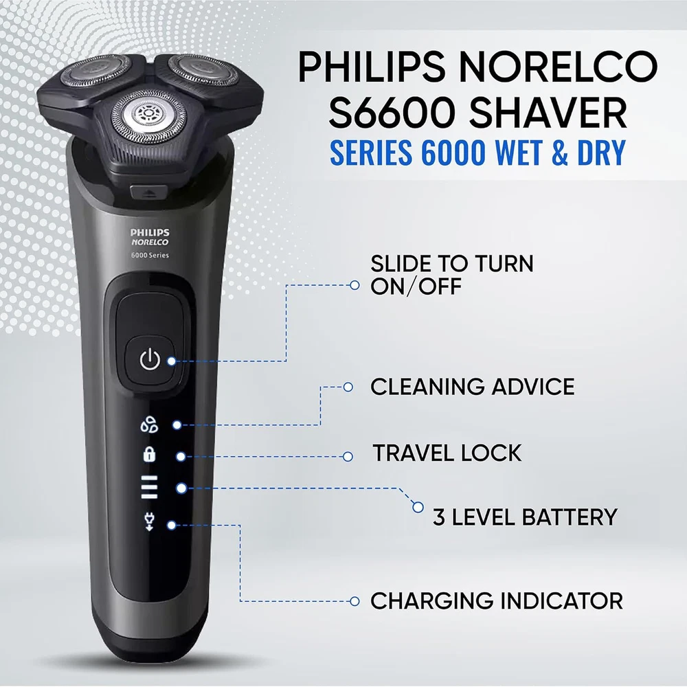 Product Description Electric Shavers for Men, Rechargeable Wet/Dry Electric Shaver with SenseIQ Technology, Cordless Electric Razors for Men with Pop-up Trimmer, Travel Case SkinProtect Blades-Philips Norelco shavers for men 6600 delivers a powerful, yet comfortable shave,cutting more hair per stroke. Up to 90,000 cutting actions per minute, SkinProtect blades deliver a close shave with fewer passes for comfortable skin. SenseIQ Technology- This is the perfect mens electric shaver with the intelligent sensor that reads facial hair density 125 times per second and auto-adapts cutting power for an effortless and gentle shave.Great electric razor for men face. 360° Contour heads- Maintains skin contact for a comfortable, smooth shave. Fully flexible heads turn 360° to follow your facial contours. Experience optimal skin contact for a thorough and skin-friendly shave with the Philips men's rotary shaver. Led Display/ Anti Slip Rubber- The LED interface includes: 3-level battery status, cleaning advice and travel lock indicator. Handle your shaver comfortably and with precision even when wet, thanks to anti-slip rubber. Dry/Wet Shave- Get a convenient dry shave or a more refreshing wet shave with gel or foam - even in the shower with the Phillips norelco mens electric razor. About Us We are a reputable seller with many years of experience selling on eBay. Our goal is to provide high-quality products and excellent customer service. Shipping Items will be shipped within 1-3 business days when we received payment. (Orders are not processed on weekends & holidays) Tracking information will be sent once item is shipped. Delivery time depends on destination and other factors Item is shipped to ebay address. Leaving correct address can minimize delay. For international shipping and shipping to Guam, Hawaii and Alaska, Please contact us before placing the order. International buyers please note: Import duties, taxes and charges are not included in the item price or shipping charges. These charges are buyer’s responsibility. We will try our best to reduce the risk of the custom duties. Local pick-up is unavailable at the moment. Contact Us We reply any email messages within 1 business / working days(off-duty at weekend). If you do not get a response from us, then please check your junk or spam mailbox. Our Business hours: Mon-Fri 9:00-18:00, UTC/GMT +8 hours. Please contact us either by clicking "contact seller" in the "purchase history" section or simply click "ask a question" at the bottom of this page. If you are unsatisfied with our item or service, please contact us before leaving any feedback. We are committed to resolve all issues in a friendly and satisfactory manner.