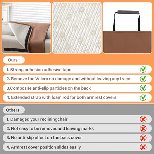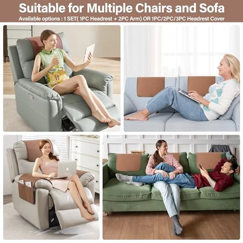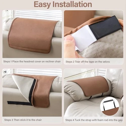 Return Policy Fast Delivery Trusted seller Recliner Headrest Cover for Recliners Non Slip Back Sofa Headrest Covers and Arm Covers Faux Leather Headrest Cover for Furniture Couch Headrest Protector for Living Room,1 Set Product Description 【Recliner Headrest Protector】 Recliner headrest cover and armrest covers are high quality thick artificial leather materials, the headrest covers for recliners are carefully crafted with fine stitching, to keep your furniture like new and protect it against spills and stains. The leather recliner chair cover is waterproof, wear resistant and tear resistant which can be applied for a long time, so it's perfect for the home! 【Stay in Place Design】In order to be less slide, non-slip latex particles are used on both the back of the covers. In addition the chair headrest cover comes with adhesive tape, which is designed to leave no traces and no damage when removing the cover. On both sides of the armrest covers are added straps with foam rods that can be tucked into the gap between the armrests and seat cushions to increase stability. 【Utility Pockets on Both Sides】T are two pockets on either side of the recliner covers to accommodate your needs. The large pocket on one side can conveniently store your magazines, etc. Please confirm before purchase. (Due to lighting, the color shown in each picture will be different, please take the actual color as the standard.) 【Wide Range of Application】 Recliner chair covers with arms are available in 4 options:1 SET( 1PC headrest + 2PC arm) OR 1PC/2PC/3PC headrest cover. chair head covers are suitable for many places including recliners, double chairs, sofas, loveseats and more. Serving you in various ways. 【Easy to install & Easy care】Follow the Instructions in the display picture, you will have no problems installing. Just takes 1 minutes the covers will give your chair a new look! Best choice of both leather and fabric. Care instruction: If t is stains on the headrest cover, you can use a brush and soapy water to clean it. No machine wash. No microwave. (Service Guarantee: If have any questions about the product, please contact us for help.) Shipping Returns Payment Shipping Shipping is FREE to all addresses other than APO/PO boxes in the lower 48 states. All our stock ships from US-based warehouses. Shipped via USPS or UPS (depending on location and package weight) Unless stated otherwise, all orders will ship within 24-72 hours of your payment being processed. Check our feedback to see the great reviews of FAST shipping we offer. Returns Seller does not accept returns Payment We currently accept payment via eBay managed payments only. Once payment is cleared, we will dispatch your shipment within 1-3 business days. Please refer to the "Shipping" tab for more information regarding shipping speed to your destination.