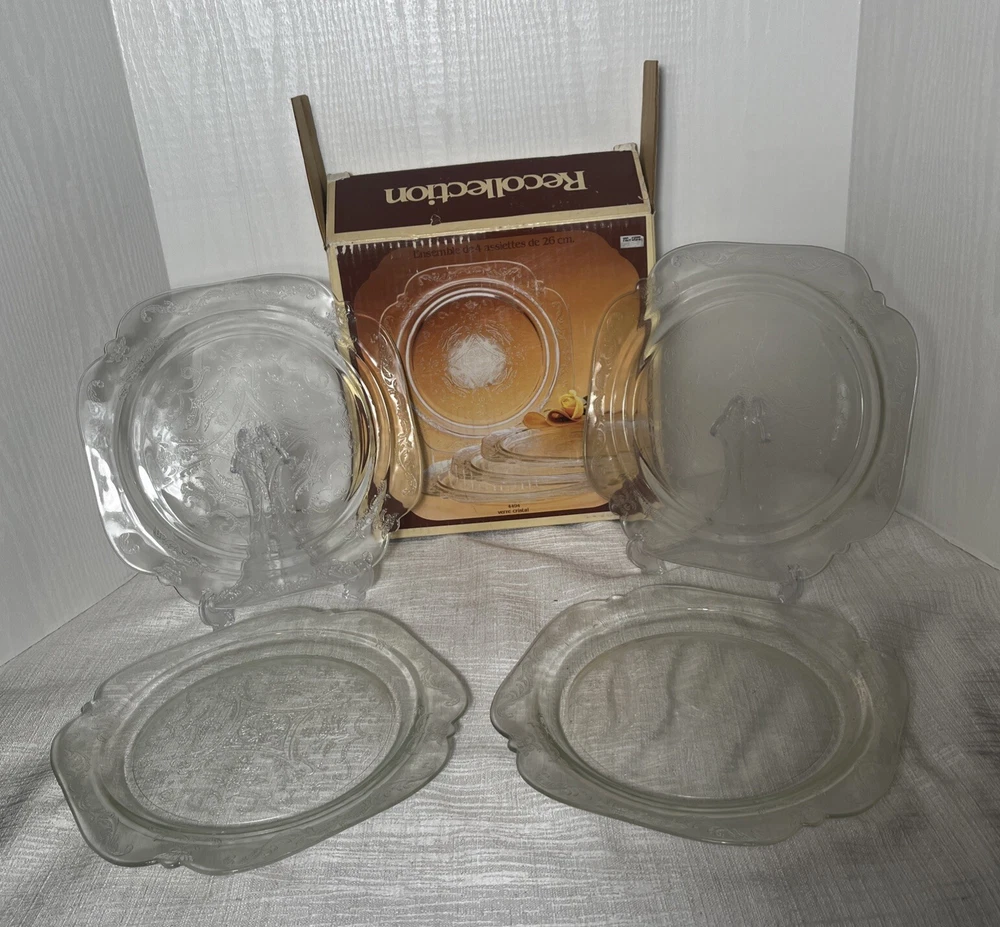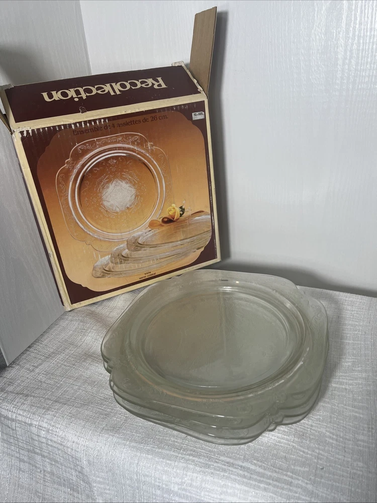 Elevate your dining experience with the Recollection Clear Indiana Glass 4494 4 Piece Dinner Plates Set. Crafted from premium crystal, these square plates boast a timeless design that complements any table setting. Ideal for all occasions, their clarity adds an elegant touch to your meal presentations, making every dinner a special occasion. The set comes complete with four dinner plates, each meticulously fashioned to ensure a balance of style and functionality. Vintage yet versatile, these plates are a testament to Indiana Glass's renowned craftsmanship, suitable for both casual and formal events. The included original box enhances the visual appeal and serves as a protective storage option when not in use. Preowned. Packed in original box, with original price tag. 4 dinner plates. Excellent condition. Shipping USPS Ground Advantage Shopwith confidence***Returns accepted within 30 days! Returned items must bereturned in original condition received, buyer pays return shipping cost. Takea peek at SweetShine's other listings. Thanks for viewing.
