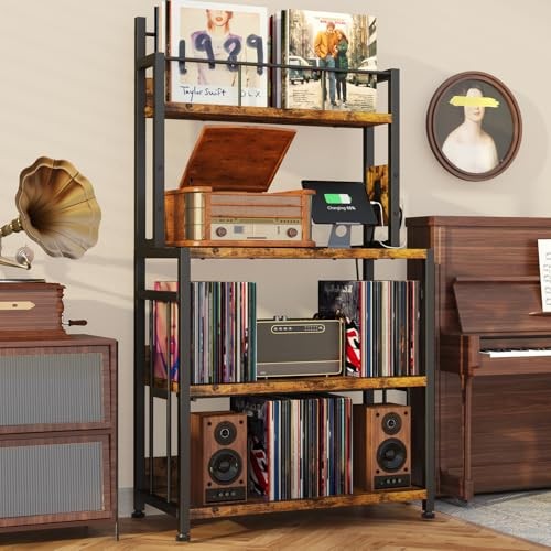 Menu 1. We require immediate payment. 2. We currently accept payment via eBay managed payments only. 3. Once payment is cleared, we will dispatch your shipment within 1-3 business days. Please refer to the "Shipping" tab for more information regarding shipping speed to your destination. Record Player Stand with Vinyl Storage, Turntable Stand Holds Up to 300 Albums, Large Record Player Table with Charge Station, Vinyl Record Stand for Living Room Product description Large Size & Large Capacity: Specifically enlarged, the tabletop(Dimensions:14.17"D x 25.51''W)of our record player stand can accommodate nearly any size of record players. You can enjoy your music without worrying about your turntable sliding off. Featuring three spacious shelves, our record player table can hold up to 300 vinyl records, while the two lower tiers can store audio equipment or other media essentials, providing a home for your treasures 4-Tier Vertical Design: Our vinyl record stand features a vertical structure with four tiers, the top tier serves as the vinyl record storage area, allowing you to organize and store your frequently listened to vinyl records as you prefer. The record player shelf is positioned 31 inches high off the ground, eliminating the need to bend down when playing your music and ensuring your comfortable listening experience Multi-function: With two built-in charging sockets and a 6.56-feet power cord, the turntable stand facilitates the process of powering up your record player. Ample space at the bottom for your audio equipment, magazines, books, etc. Four dividers enable you to organize your records efficiently. We have integrated some detailed designs into our vinyl record player stand to ensure they meet your specific needs Steady and Stable: Constructed with a sturdy metal frame and high-quality wooden board, this record stand can hold up to 90 lbs per shelf. The iron pipes on the sides add stability and prevent deformation. Adjustable feet remove your concern that the record player cabinet may not be stable on uneven surfaces Easy Assembly: We have labeled all the components of the record player stand with vinyl storage and prepared very detailed installation instruction for you to ensure that you can assemble the vinyl record table in less than 10 minutes. pays attention to details and is dedicated to enhancing your shopping experience PLEASE MESSAGE US IF YOU HAVE ANY OTHER QUESTIONS, AND MANY THANKS FOR READING ALL OF THIS. Copyright ©#. All Rights Reserved.