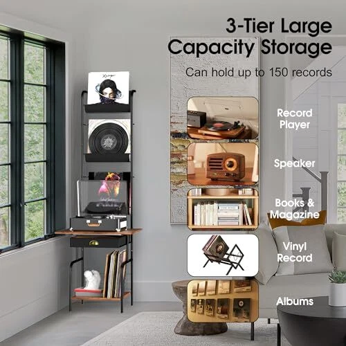 Menu 1. We require immediate payment. 2. We currently accept payment via eBay managed payments only. 3. Once payment is cleared, we will dispatch your shipment within 1-3 business days. Please refer to the "Shipping" tab for more information regarding shipping speed to your destination. Record Player Stand with Vinyl Storage, Turntable Stand with Vinyl Record Holder Display Shelf, Record Player Table with 3-Tier Vinyl Storage up to 200 Albums, Record Cabinet Organizer Rack Product description Extra Large Countertop:Equipped with 19.7"x15.4" large countertop, our record table stand roomy enough to hold almost any sizes of turntables. The table for record player is made of sturdy thicken wooden boards and corrosion-resistant metal frames which ensure that the table can be used for a long time Large Capacity For Vinyls Record: If you enjoy collecting different record vinyls, this would be an ideal record player table with album storage. This all-in-one record player stand with vinyl storage providing ample storage space for your record players, records, speakers, audio equipment, books, magazines and more. The record holder can hold up to 200 records Vertical Record Display Shelf: The record storage holder features 3-tier oxford fabric slot which offers sufficient space to store your records in an organized and display your vinyls visible. It also allows it easy to browse and select your records Vintage Style for Your Home Decor: The vintage-inspired design and elegant exterior of the vinyl record stand elevate the style of any room. A record player stand enhances your decor, it exudes a mid century modern aesthetic, making it suitable for any style of home decoration Optimum Storage for Compact Spaces:This vinyl record player stand is stylishly in the corner, alongside your desk, or against any wall. 57.4" H *13.9" W*11.8"L overall, very convenient for you to get the record without crouching down. Vertical design it gives it plenty of storage space Tips:To enhance the stability of the vinyl player stand, we specially designed to mount to the wall on the top PLEASE MESSAGE US IF YOU HAVE ANY OTHER QUESTIONS, AND MANY THANKS FOR READING ALL OF THIS. Copyright ©#. All Rights Reserved.